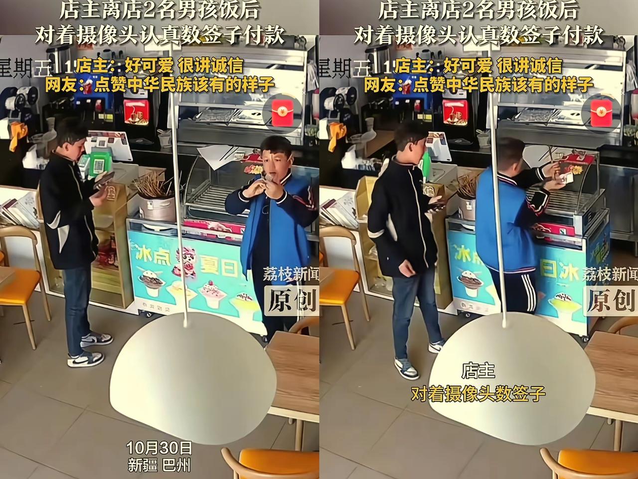 新疆俩男孩火了!监控下的举动,才是最动人的“诚信名片” 别再总说“诚信是大道理”了,新疆巴州这俩男孩用几根签子就把道理活成了日常,全国网友都被暖到了。 店主临时去医院送东西没锁门,俩男孩吃完麻辣烫找不到人结账,直接凑到摄像头底下一根一根数签子。签子摆得整整齐齐,钱压在上面,这一幕被监控拍得清清楚楚。 没人监督的时刻,才最见人心。他们不是做给任何人看,只是觉得“该给的钱就得给”,这份自然流露的诚实,比任何豪言壮语都有力量。难怪网友说这就是“新疆儿子娃娃”的样子,骨子里的实在藏不住。 都说现在的孩子早熟,可这份不掺杂质的诚信,才是成长里最珍贵的底色。 你们身边见过这种“小事见人品”的温暖瞬间吗?来评论区聊聊~