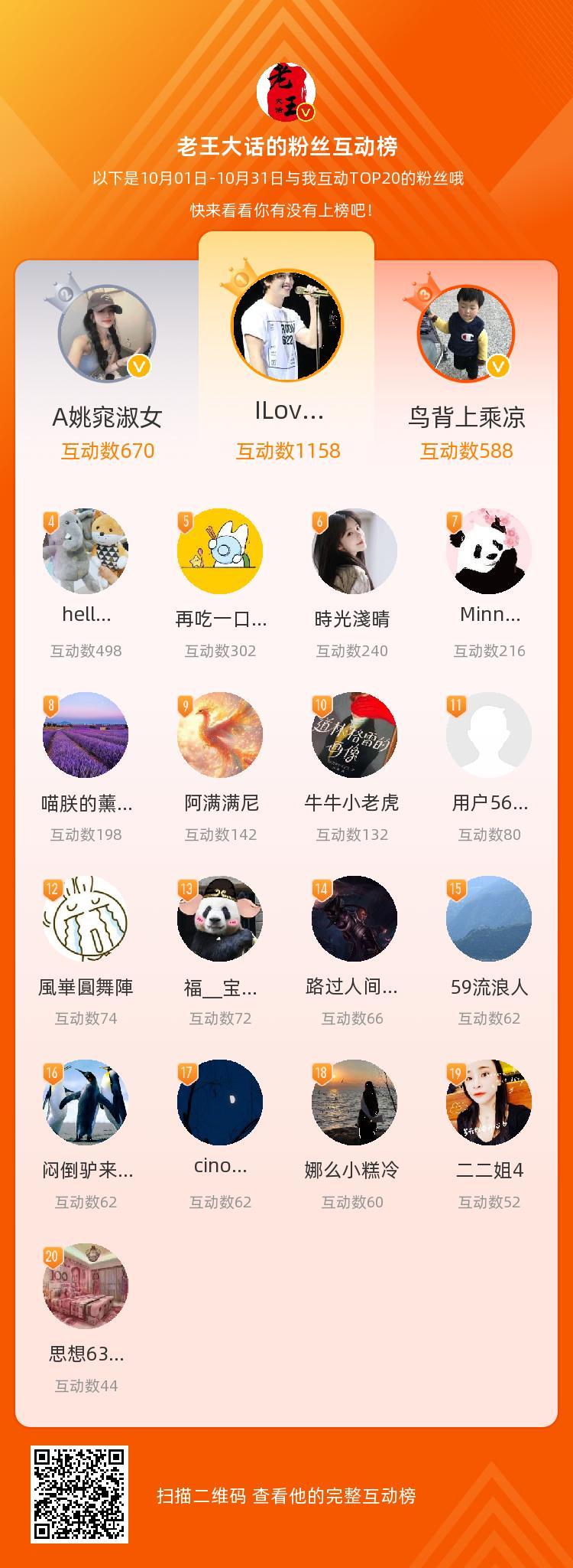 等,你们是我本月排名TOP20的粉丝,感谢你们的陪伴与支持,期望一直都有你们的相