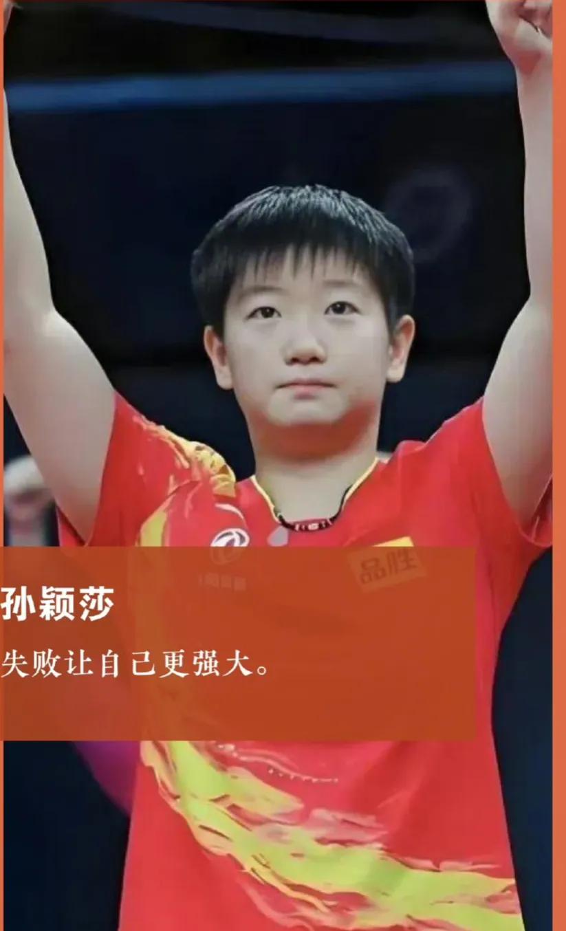 记者问孙颖莎:“用一个词形容自己。”莎莎说:“少年老成。”这个词很准确。 毕竟她在17岁的时候就说自己已经不年轻了。 私下的孙颖莎性格非常好,爱笑爱闹,又能撒娇,怎么着都行。 但上了场完全不一样了,有时像只小猎豹,有时像雄狮,就是王者。 她必须让自己沉住,尤其在脸上还有稚气的时候,她更得表现得老成持重,不能让对手轻视,这也是重要的战略决策。