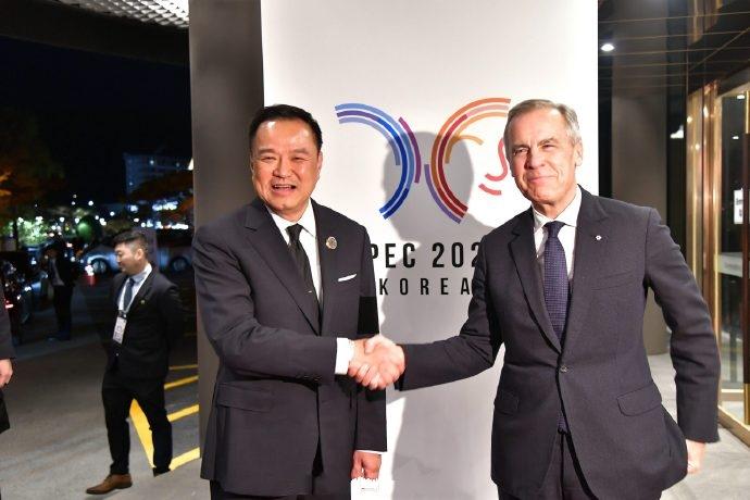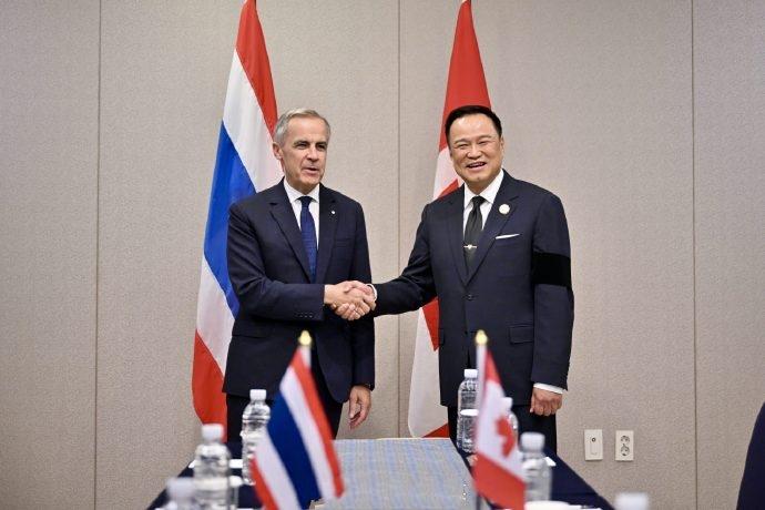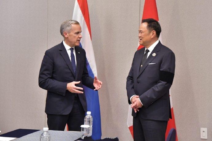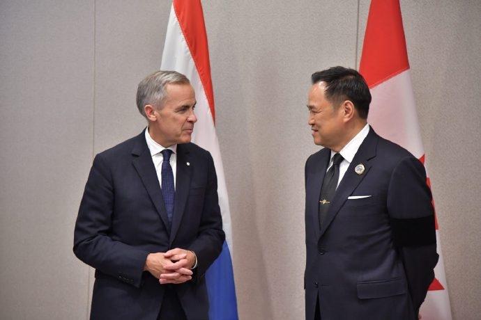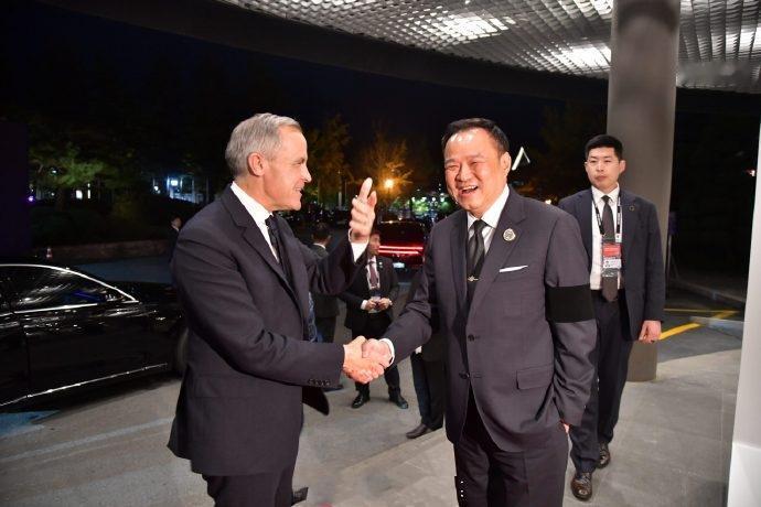 10月31日晚上,加拿大总理和泰国总理单独会晤了! 从曝光的画面我们可以看出,泰国总理阿努廷胳膊上还佩戴一个黑色布条,据悉他这是为了哀悼去世的泰国王太后,更加令人意外的是,泰国总理的领带也是黑色的。 除此之外,泰国总理当天似乎看起来还挺硬气,和加拿大总理握手的时候,其中有一张照片他另外一只手放在兜里面了,而加拿大总理是双手握住泰国总理的手。不得不说这一点可以看出泰国总理真的有点飘了啊!据悉泰国总理也是刚刚才当选上,这次也是他首次参加这么重要的会议。 在亚太经合组织第三十二次领导人非正式会议上,泰国总理的夫人也来了,在看权志龙的歌舞表演时还挺抢镜。