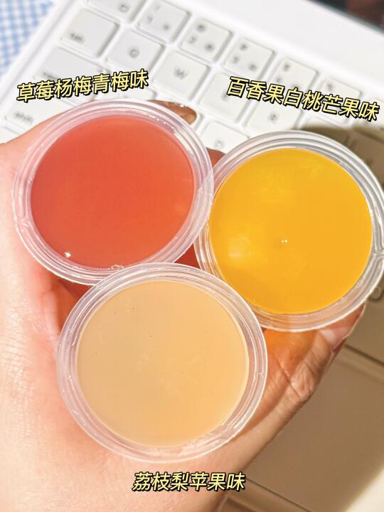 里面有三种口味!!🍓草莓杨梅青梅🍏荔枝梨苹果🥭百香果白桃芒果…每一种都超级好吃!!