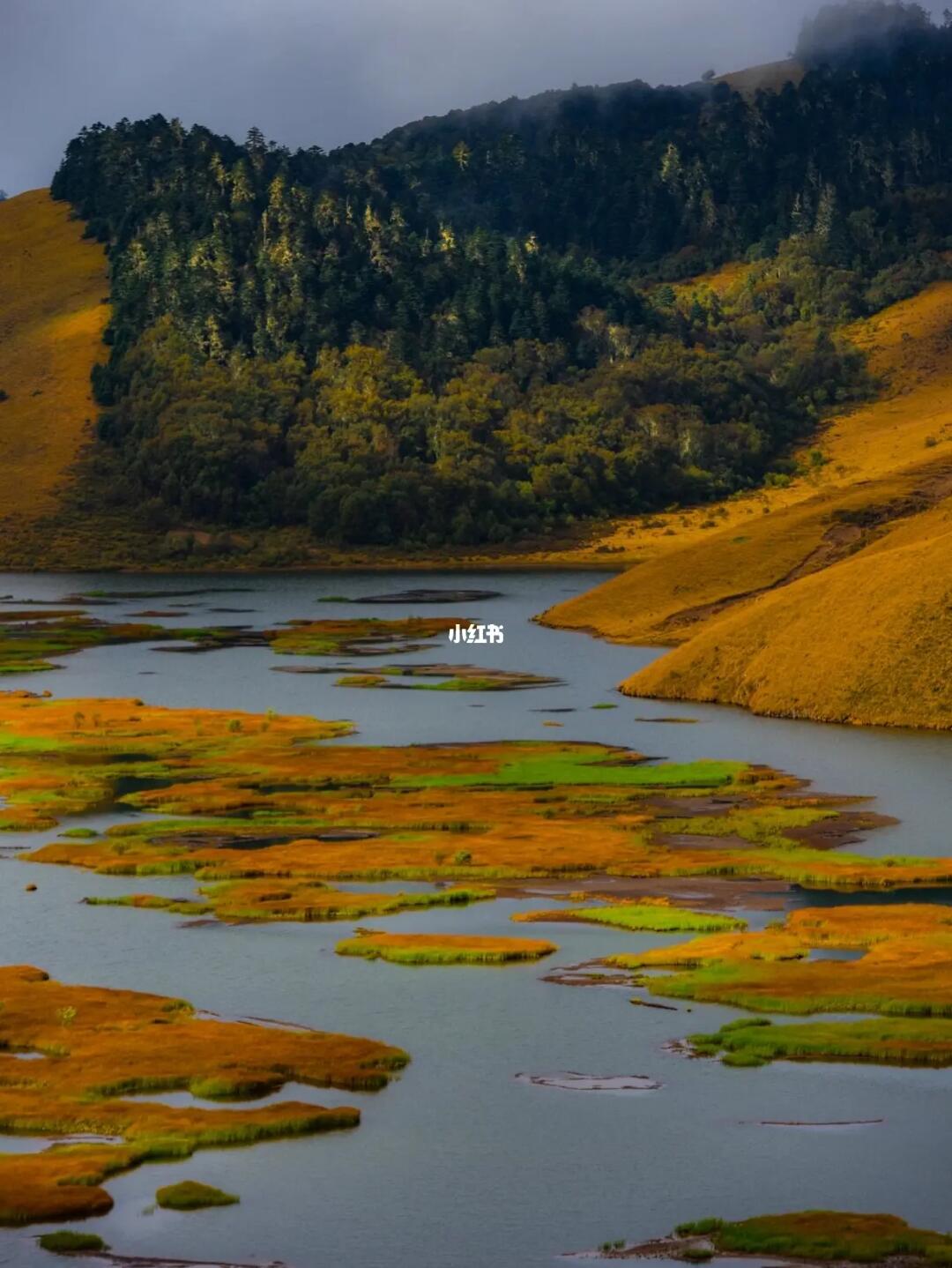 🎈这里最独特的景色是湖中漂浮着数百座漂浮的草甸,这些浮岛并不固定,随着季节、风、气候而不断变化,可谓每日一景。秋天里的浮岛金黄色连成一片,格外耀眼。
