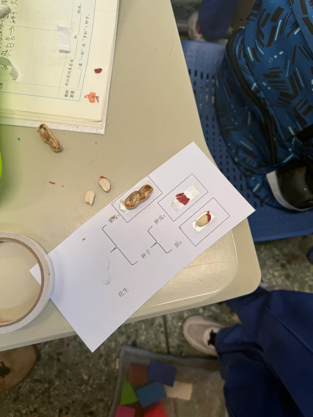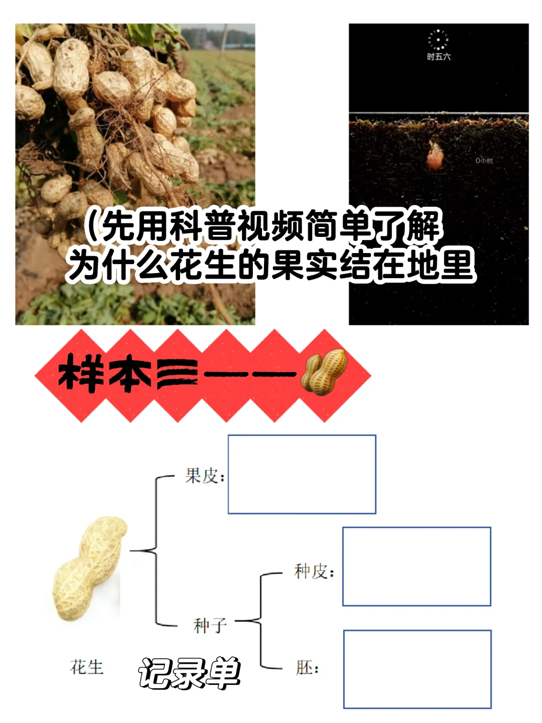 (受初中生物老师博主的花生解剖启发,改成了更简单的“小学版本”,帮助学生理解【果皮】、【种皮】、【胚】等关系