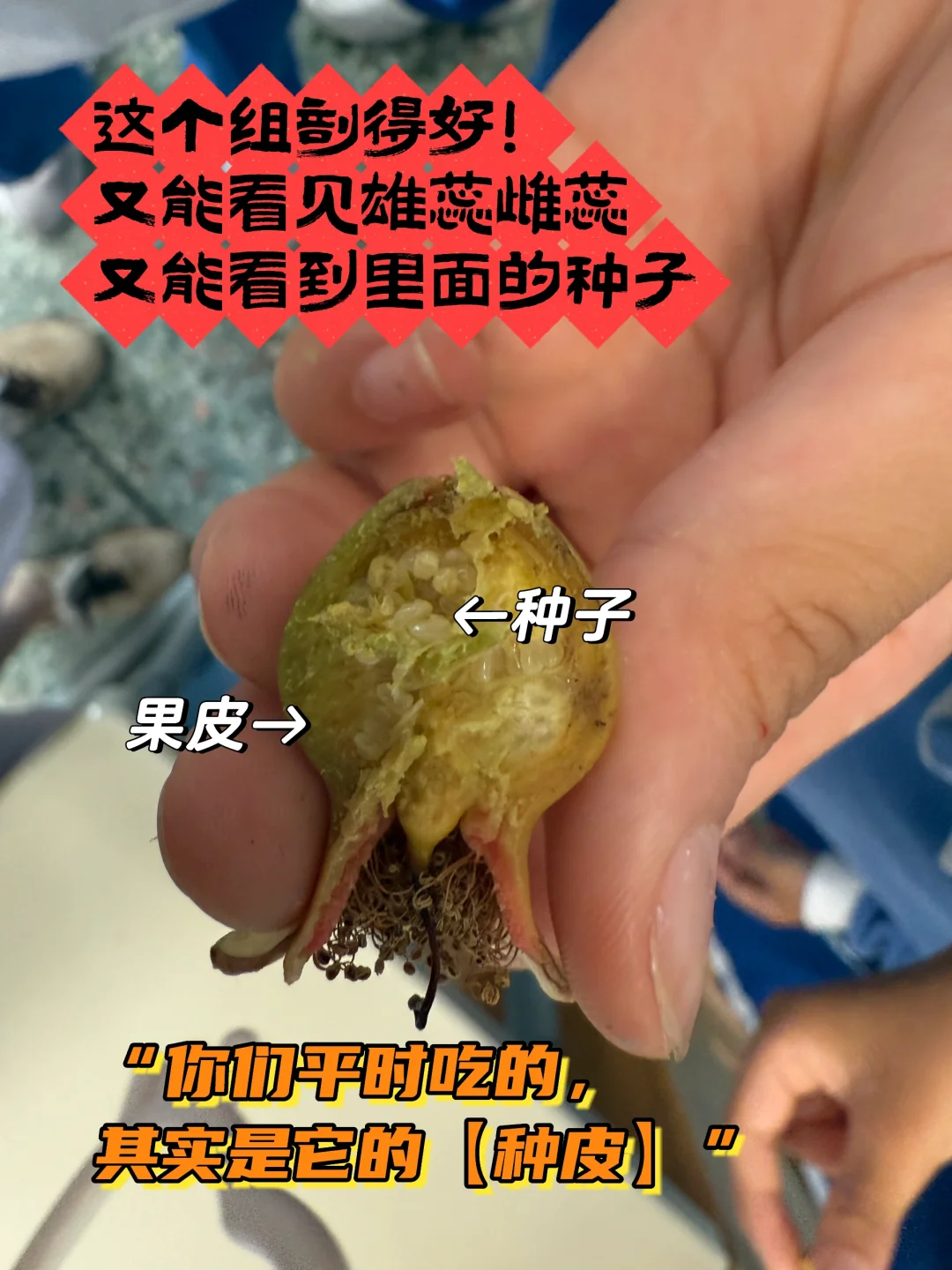 🔵解剖石榴果实,发现里面的【种子】
