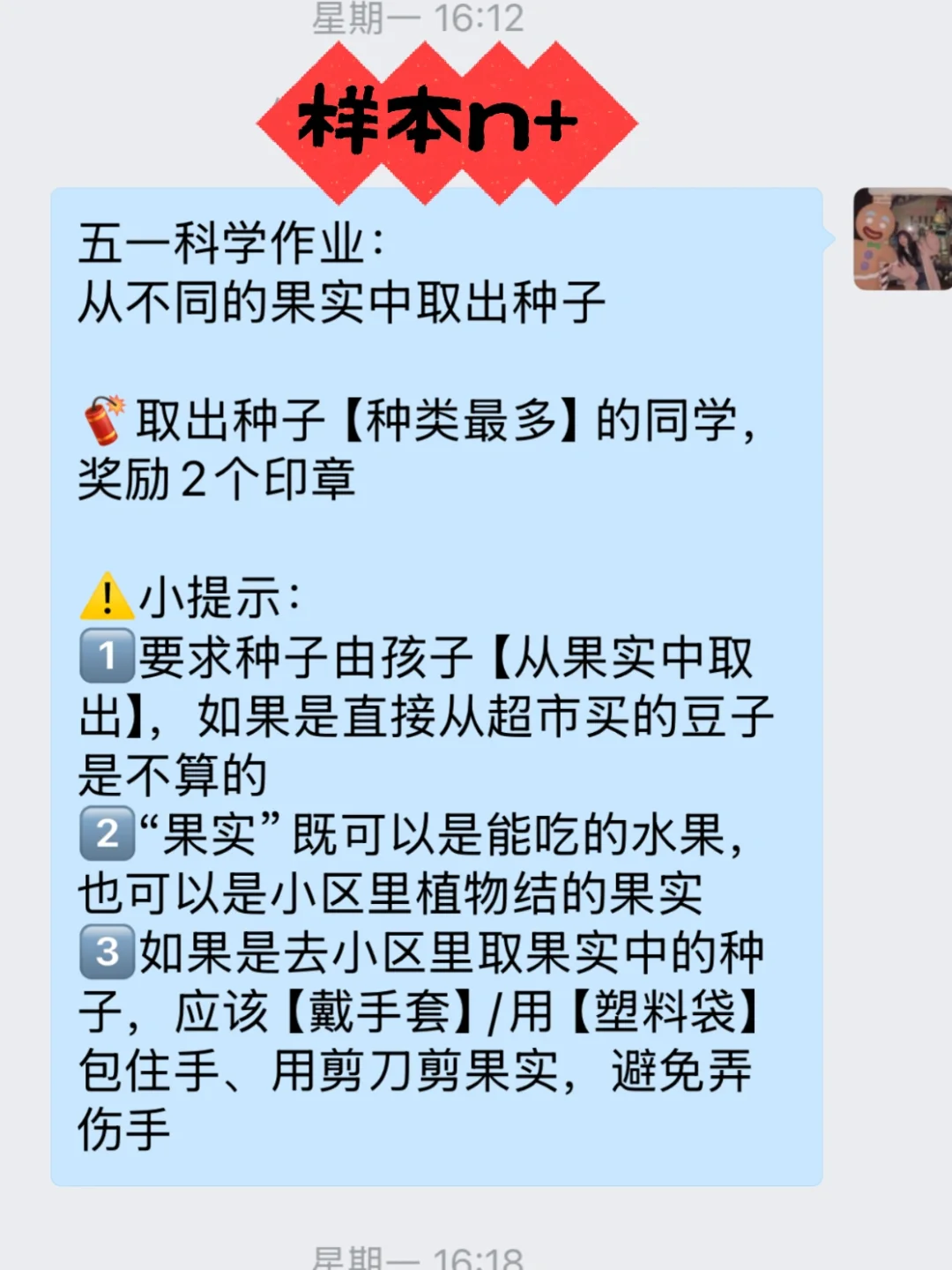 👧🏻:老师,五一科学有作业吗?