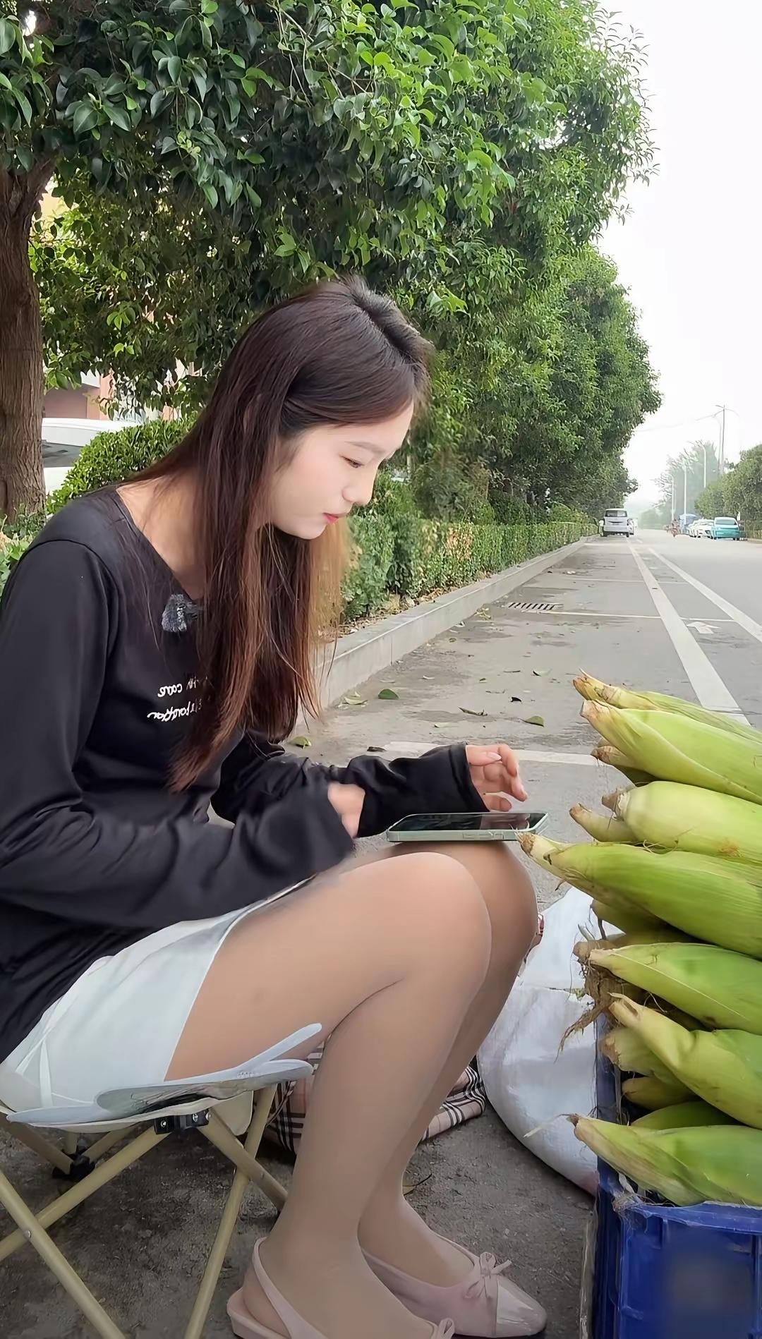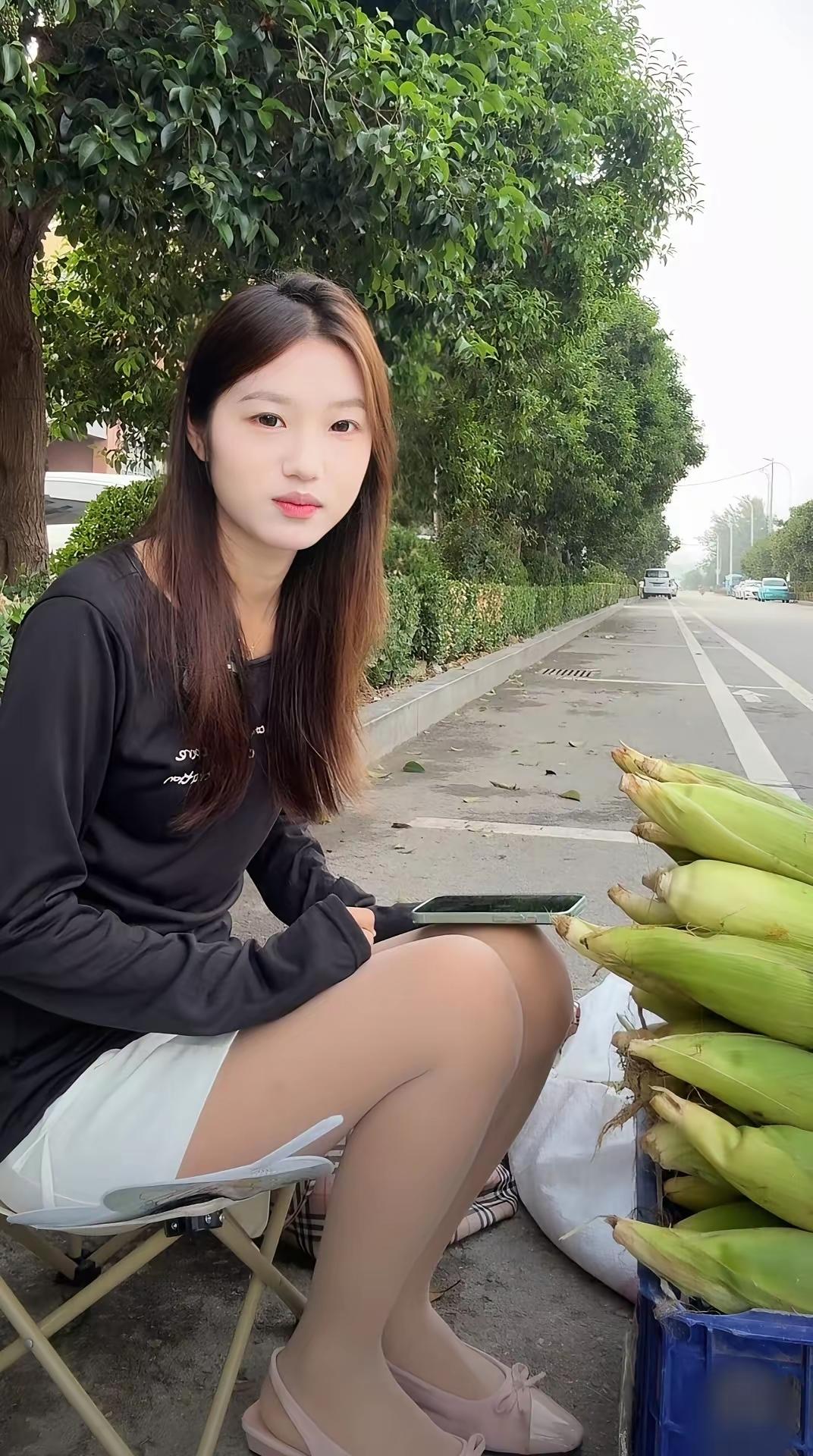 分享一张你最近随拍的照片勤俭持家。自力更生。摆个地摊。卖卖玉米。