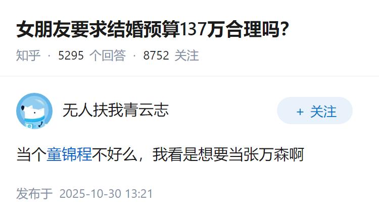 女朋友要求结婚预算137万合理吗?
