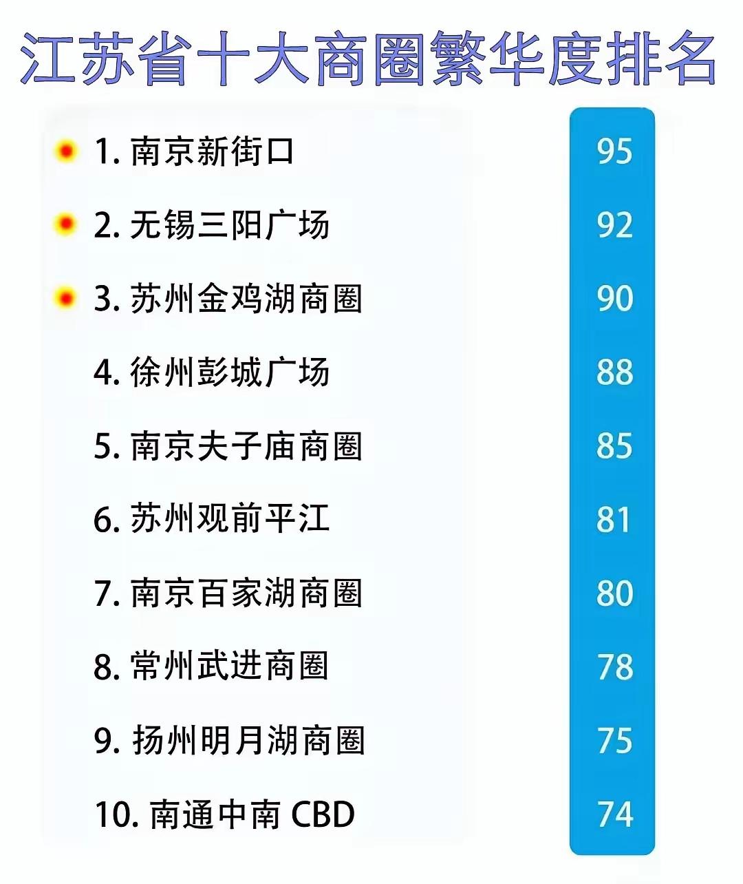 你心中最宜居的城市是哪里 秋日生活打卡季有老徐,江苏又拿全国第一,没办法的事。 全国(含港澳台)宜居城市百强榜,江苏的宜居城市最多,有10个,一线城市1个,南京。二线城市2个,无锡、苏州。三线城市7个,常州、扬州、徐州等。浙江省占8,广东有5个,山东有4个,粤鲁两省加一起,也干不过江苏的,37个城市只挑出9个来。 ​ 江苏内部也是苏南苏中8市全上,苏北五市只有盐城、徐州2市入选,排名靠后。再看江苏十大繁华商圈,苏南占6个,苏州3个,南京2个,无锡、常州1个,苏中占2个,南通、扬中各1个,而苏北只有徐州1个,商贸业发达也是城市宜居的重要条件之一的。 中国宜居城市榜 江苏 浙江 广东 山东