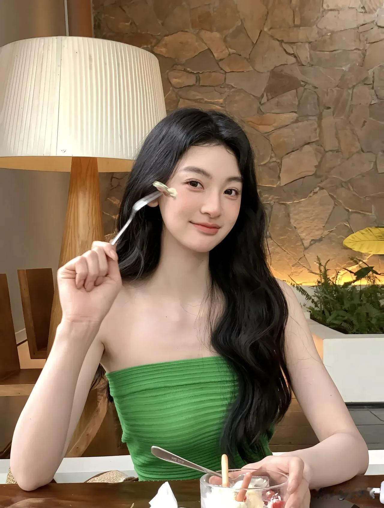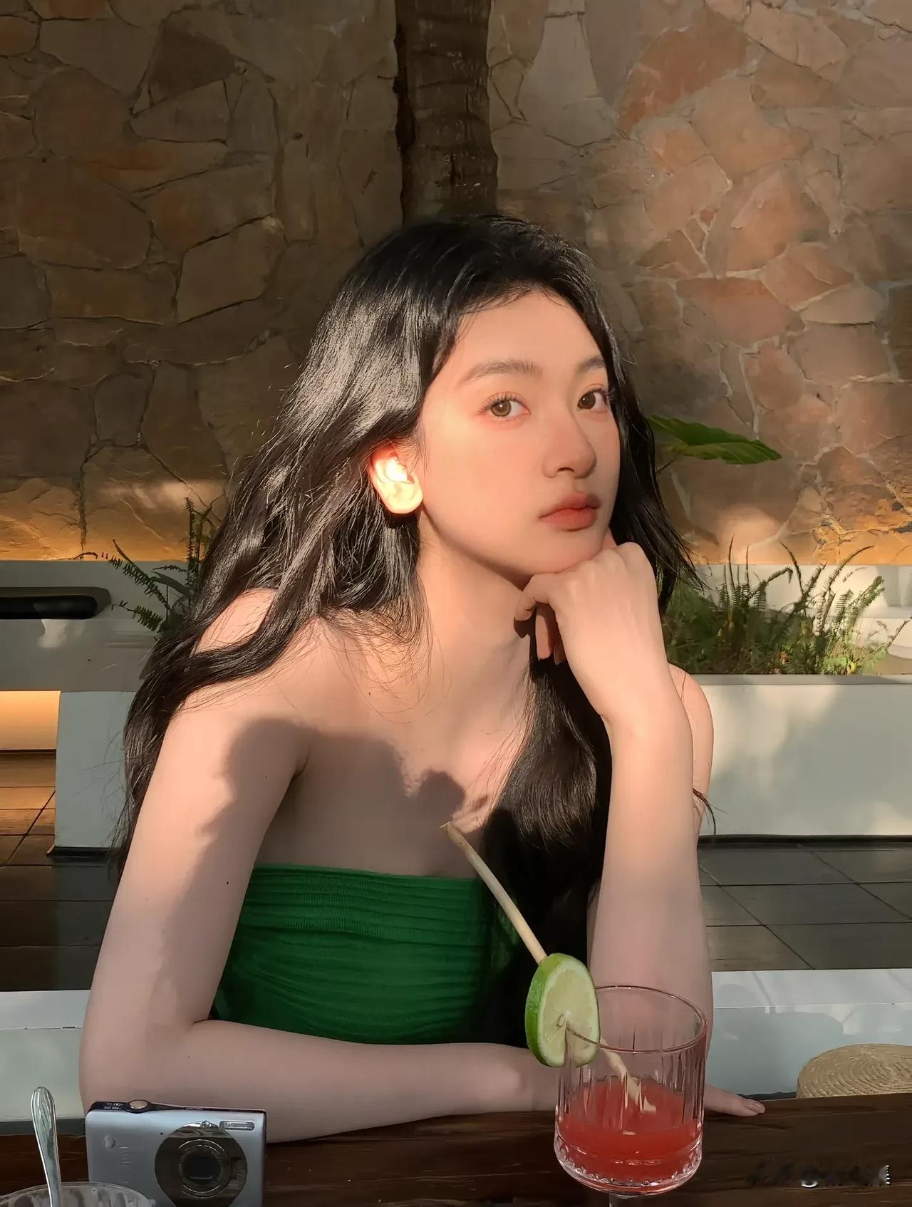 阳光下的甜美女孩,黑发白肤,笑容甜美,时尚穿搭,尽显青春活力!