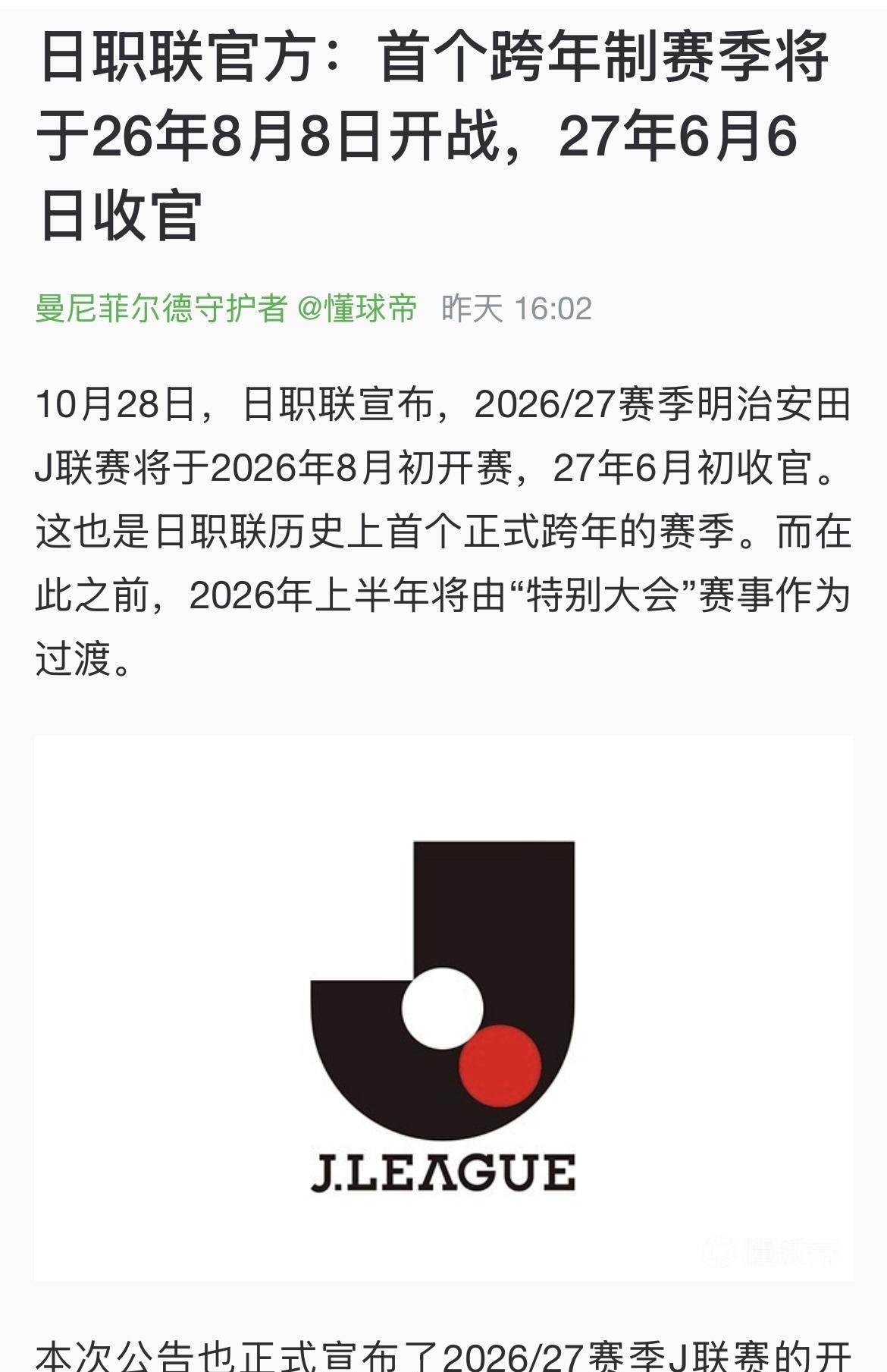 日职联官宣,将采用跨年赛制,从26-27赛季开始。这是日本足球与世界主流接轨的重要一步,毕竟欧洲足坛都采用跨年赛制。 本月的国际比赛日,日本国家队赢了巴西国家队,尽管是友谊赛,但胜利就是胜利。世界杯上,日本还赢过德国队呢。 前几年武磊参加完国家队比赛,返回俱乐部,在机场看到了成群结队的日本留洋国脚,他却是孤零零一个,艳羡不已。而现在连武磊都回来了。 日本足球“脱亚入欧”越来越成功,为亚细亚争了光,为黄种人长了脸。