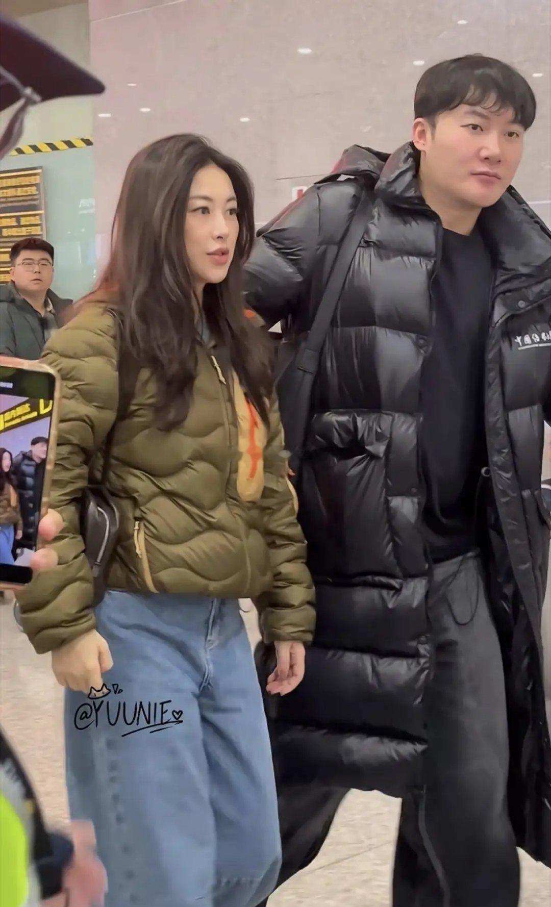 朱珠机场被偶遇,吐司羽绒服配牛仔裤,简约穿搭难掩好气质,果然人美穿什么都好看,亮眼又吸睛。