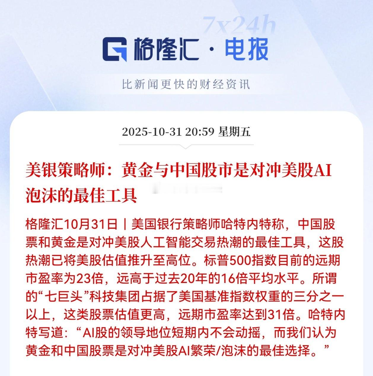美银策略师:黄金与中国股市是对冲美股AI泡沫的最佳工具