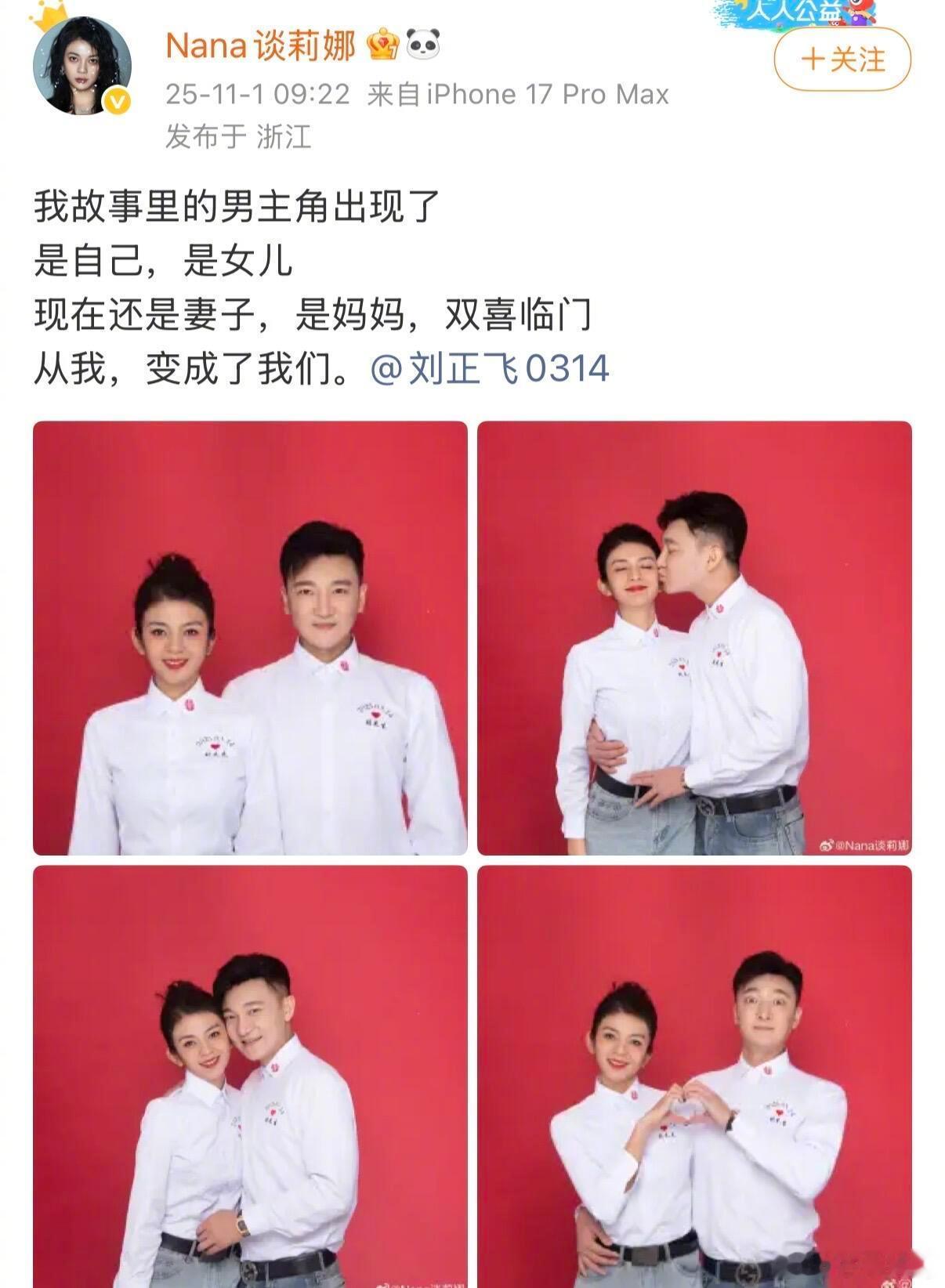 09快女谈莉娜官宣结婚怀孕了,“我故事里的男主角出现了”,“现在还是妻子,是妈妈,双喜临门”,之前被网友拍到已经举办婚礼了[喜] 谈莉娜刘正飞官宣怀孕