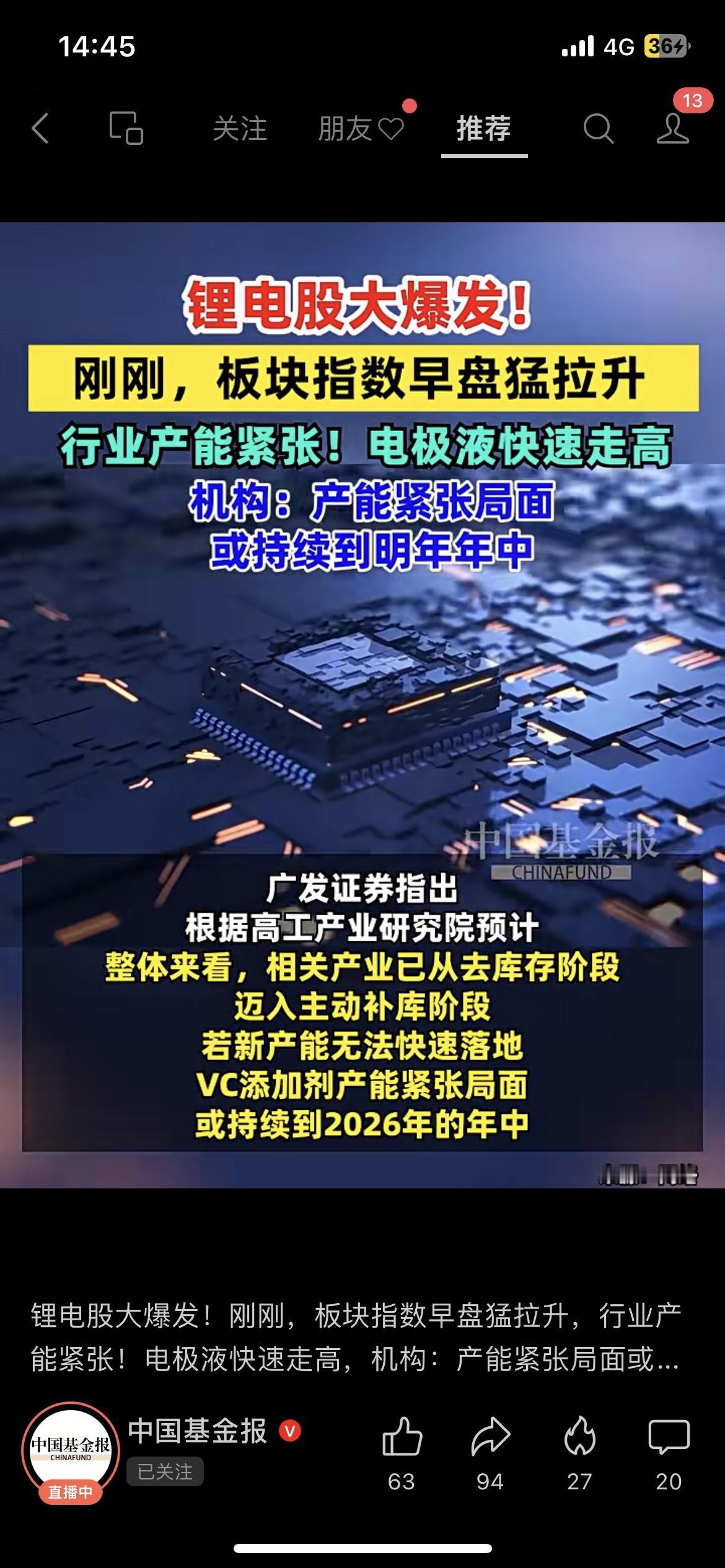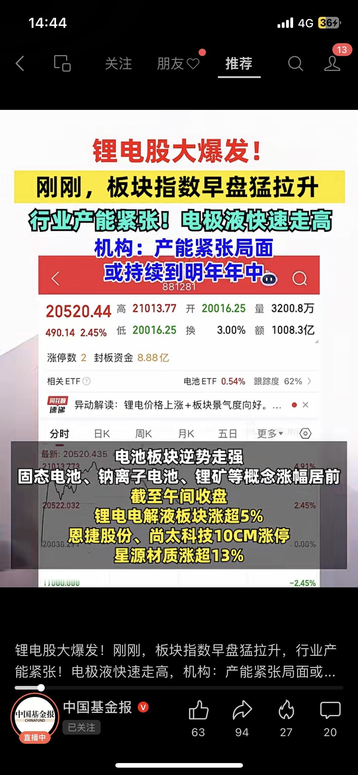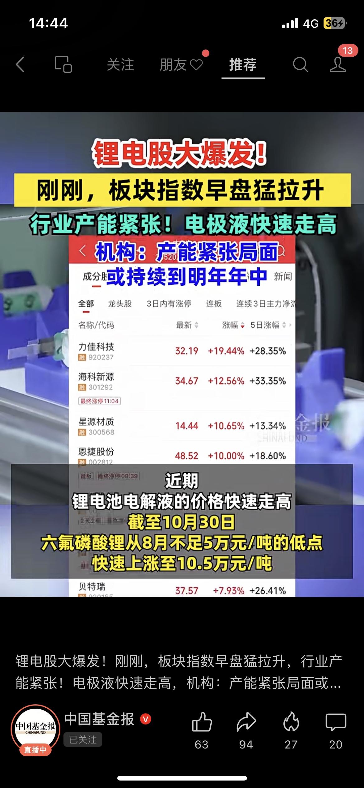 锂电股疯了!力佳科技涨19% 开头:刚开盘直接炸锅!锂电板块猛冲,力佳科技一下涨了19.44%,海科新源也涨12.56%——全因电极液产能不够,价格直接飙了! 机构说这缺货得闹到2026年中,现在板块里好几个股都涨停了…手里握锂电股的兄弟,是不是已经偷着数钱了? 没上车的现在追还来得及不?快转给炒股的朋友,这波行情别踏空了!动力储能电池