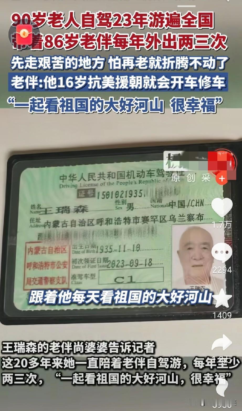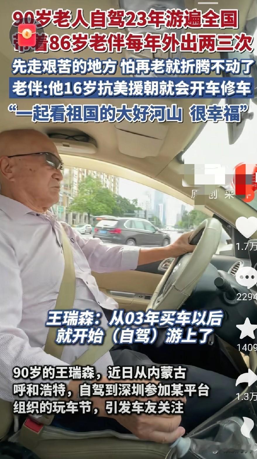 这才是真正的人生赢家,能活到九十岁就已经不得了了,秒杀百分之九十的人,而这位大爷不光活到九岁还身体倍棒,能够自己驾驶汽车,老伴还健在,两个人一起驾车游览祖国大好河山! 试问环游中国,就算正常人有几个人能做得,仅钱财一项就难倒了大多数人,就算不缺钱,你还得有时间,就算两项都有,你还得心闲,有那个闲情雅致,不为工作烦恼,不为家庭琐事所累,就这谁能做得到! 还有能活到九十岁就已经廖廖了,能活到九十岁没毛病的更是万里挑一了! 人的命天注定,除了羡慕嫉妒恨之外,只能说人家命好了!长寿晚年 高寿有福老人 最有福的老太太 老年人旅游自由 老年人开车