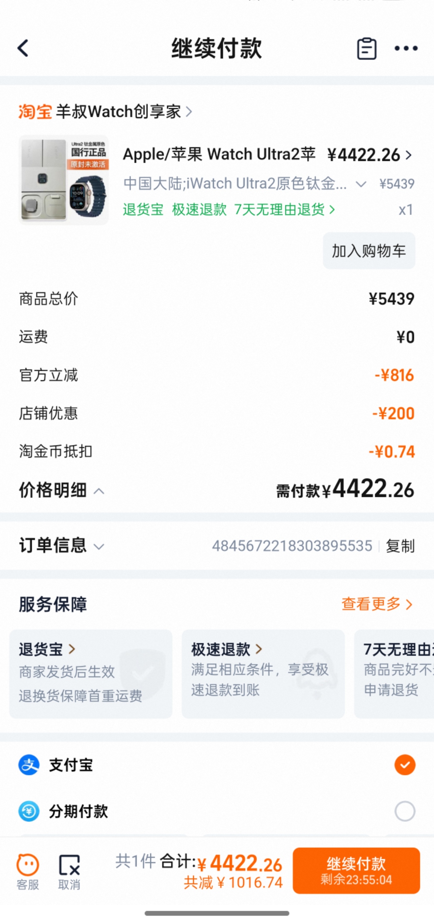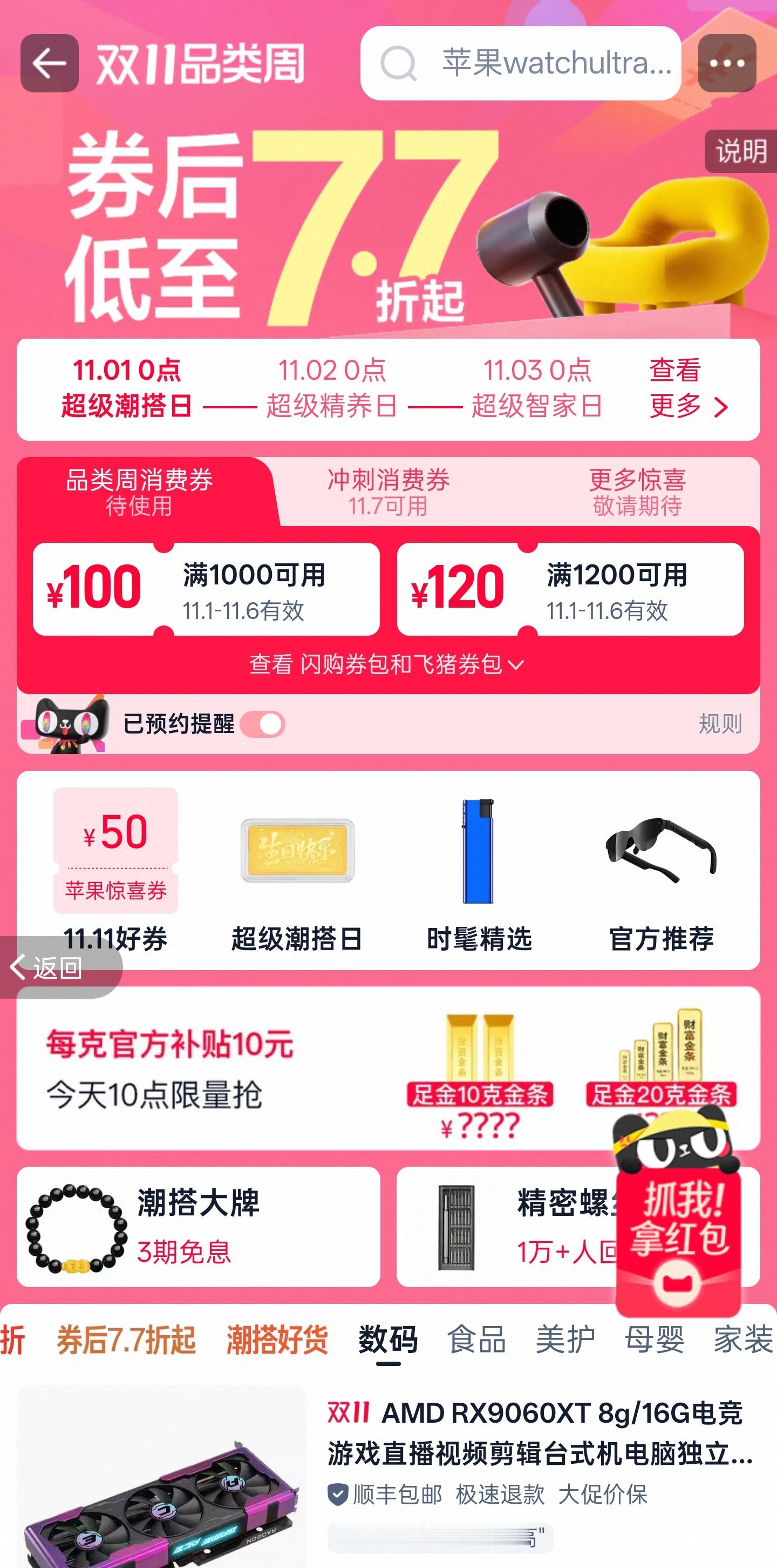 这次双十一除了降价优惠活动和国补,平台还有百亿补贴、金刚券,相当合适。我今年对于双十一的策略是在精不在多,目前准备入手的都是旗舰款数码产品,像这块上代的苹果旗舰手表Apple Watch Ultra 2,原封未激活四千出头,芯片S10比S9提升不大,最关键的是便宜了两千多块[嘻嘻]