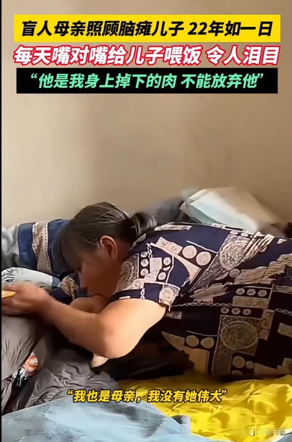 盲人妈妈22年嘴对嘴喂饭脑瘫儿:“他是我身上掉下的肉,我绝不放弃!” 她看不见光,却活成了儿子生命里唯一的光。母爱,真的能超越一切苦难。 这是“为母则刚”最极致的体现。命运给她关上了所有的门,她却用爱凿开了一扇窗,眼前虽是一片黑暗,但她用爱照亮了儿子的整个世界。