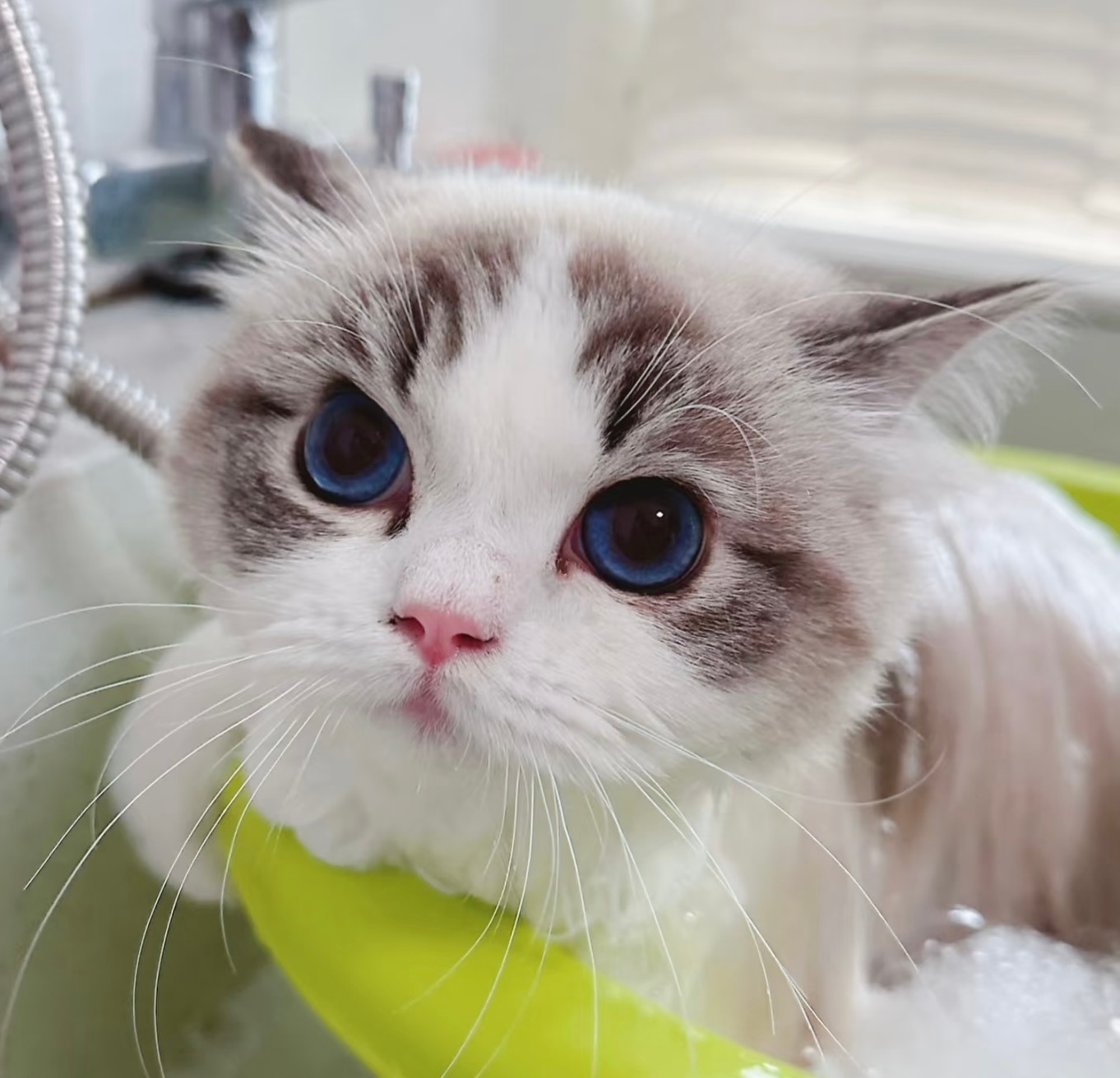 蚵仔煎同窝亲妹妹,也是最最最像蚵仔煎。超级大眼睛,饱满的嘴套,甜美的脸蛋,性格描述最直接就是她的世界里没有坏人,熟悉后简直是影子一般,人在哪她在哪。布偶猫所有美好的词语都能在她身上体现,黏过麦芽糖。对于同伴很友好,有人在的情况下会争宠,非常喜欢被摸头和下巴。