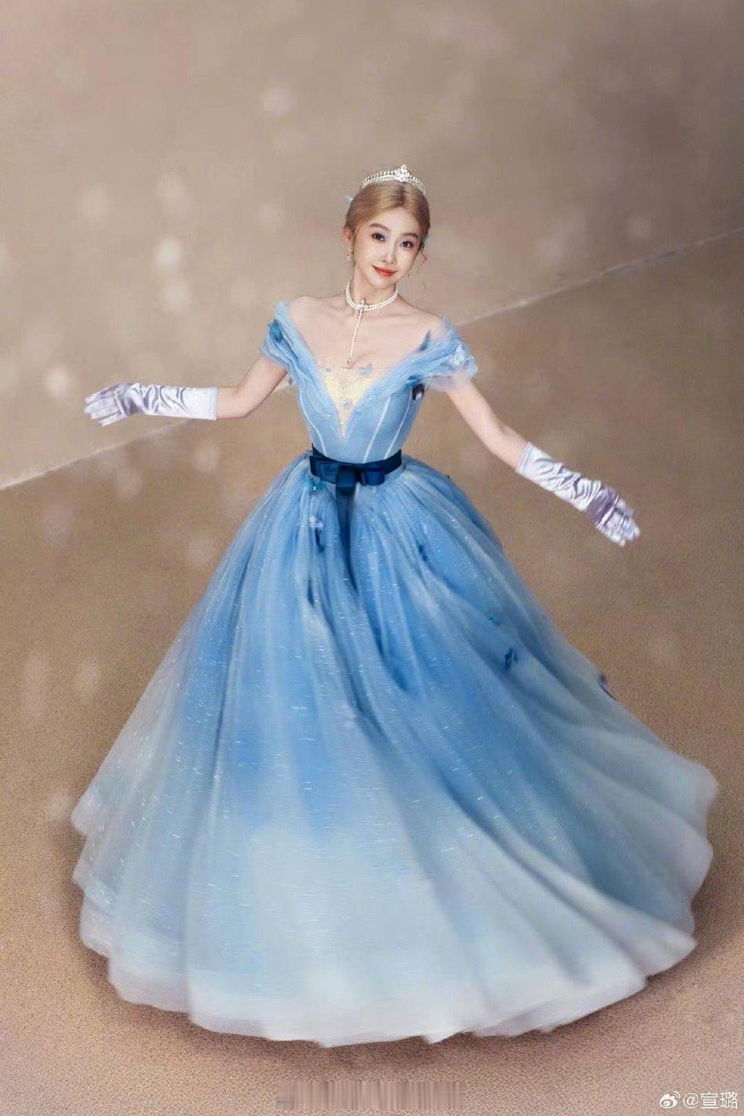 宣璐cos辛德瑞拉 宣璐用颜值和仪态诠释了什么叫“天生公主相”!标志性的蓝色礼服轻盈飘逸,细碎的闪耀装饰如同星光,配上她温柔的眼神,活脱脱从童话里走出来的辛德瑞拉,魅力爆棚。