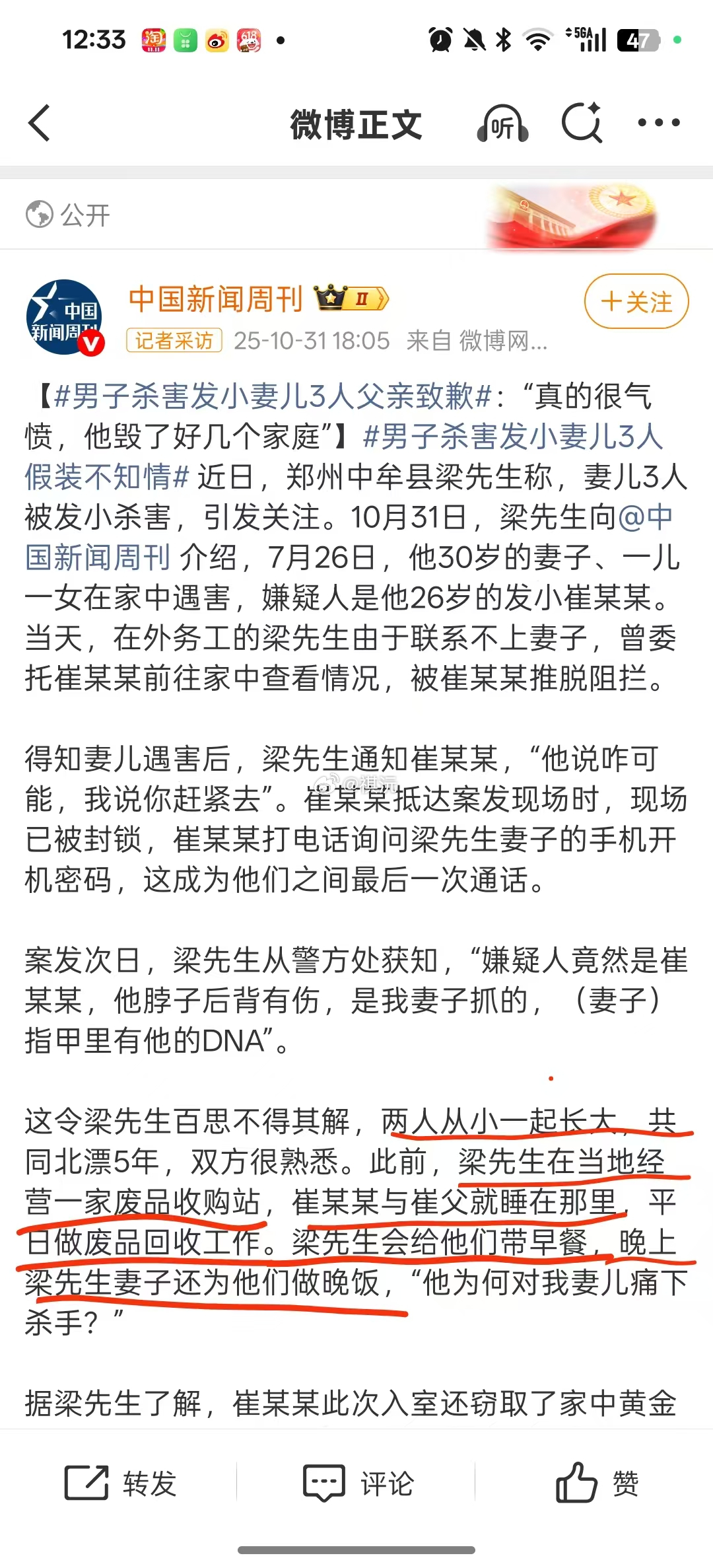 男子杀害发小妻儿3人假装不知情在这起案件中,被害人一家给予凶手的,远远超出了