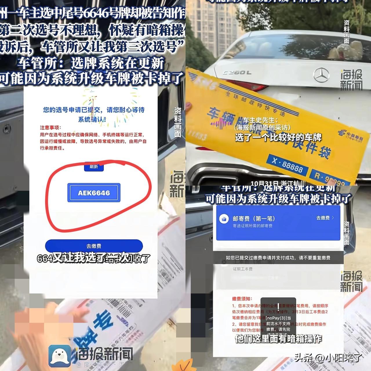 “这下真的解释不清了!”浙江杭州,男子摇车牌号,摇出了一个“6646”,车主觉得这号挺好,可下一秒系统突然提示号码作废,非得让重新选! 可好运哪能说来就来,第二次摇的车牌平平无奇,大哥越想越憋屈,直接投诉车管所,怀疑藏着“暗箱操作”。 没成想反转来得太快,车管所调查后竟是系统出了故障,还无奈承诺等系统维护好让他再摇一次! 网友也纷纷调侃:“6646又不是6666,犯不着暗箱操作”“这反应也太心急了”! 其实这事也提醒大家:遇到糟心事别先急着下结论,冲动质疑反而容易闹乌龙! 摇号这种事情靠系统,肯定都是随机的,还是运气占比比较大吧!