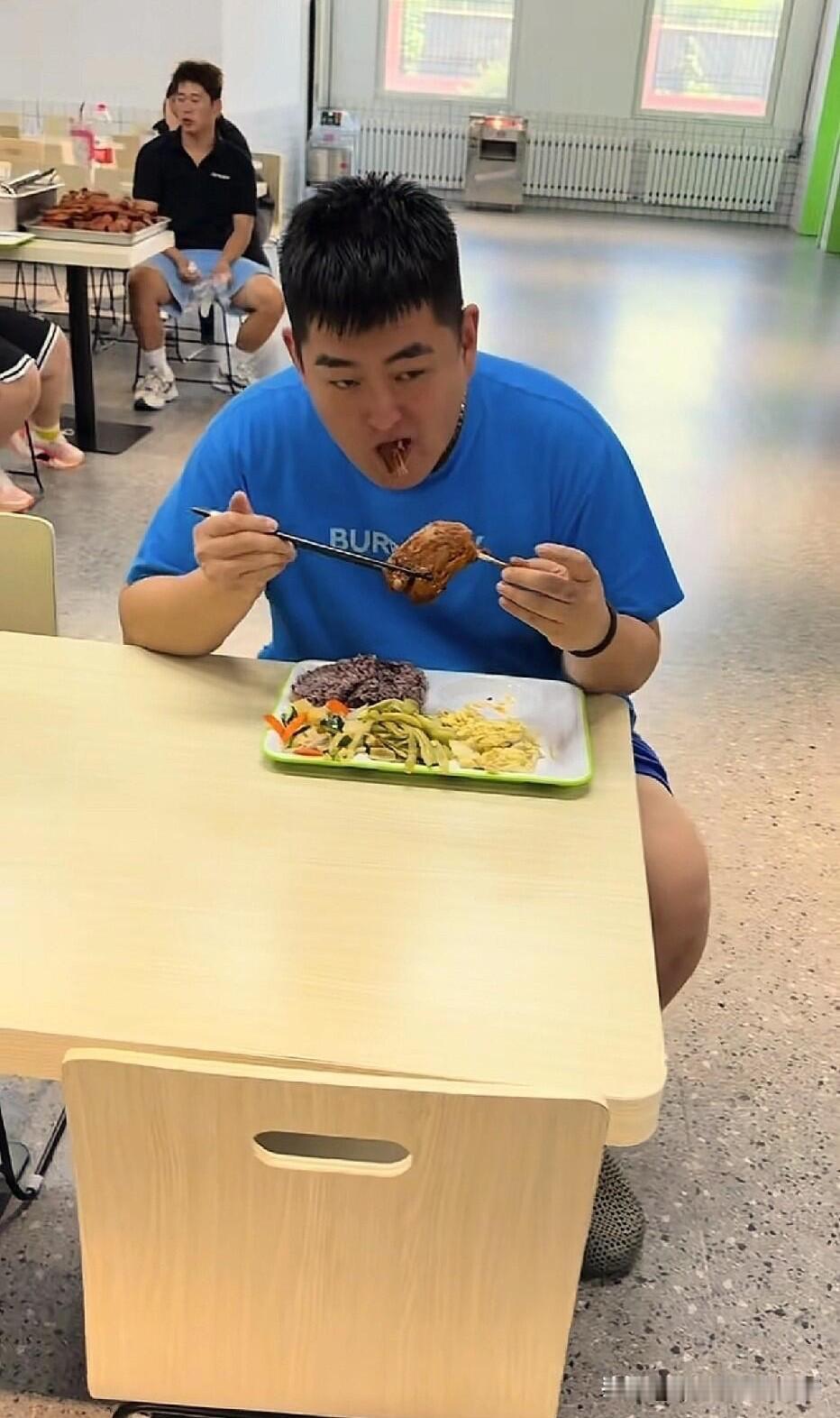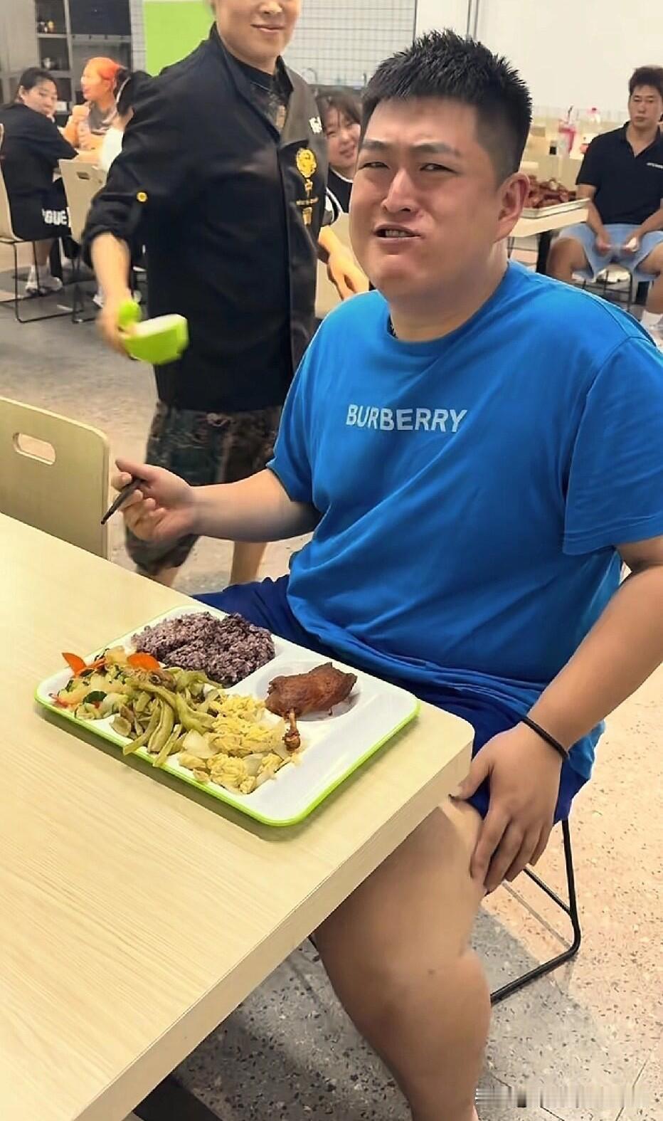 赵本山的儿子赵一楠,这身材估计得有180斤了吧,虽身材高大,但他也吃的很普通,没有大鱼大肉的,吃的跟平常人差不多的盒饭,很接地气。 只不过他看着长相朴实,和星二代郭麒麟他俩却有着天壤之别的气质。