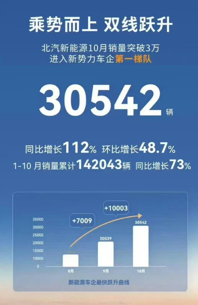 联手华为,享界起飞;自身的极狐也起飞。北汽新能源的前景比赛力斯更辉煌。