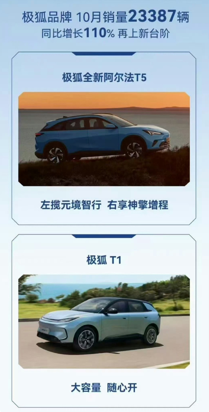 极狐T1的定单更多了,应该7万台了,全新阿尔法T5也刚上市,后面还有S3、MPV、全新SUV等车型,后续增长势头会更猛烈。