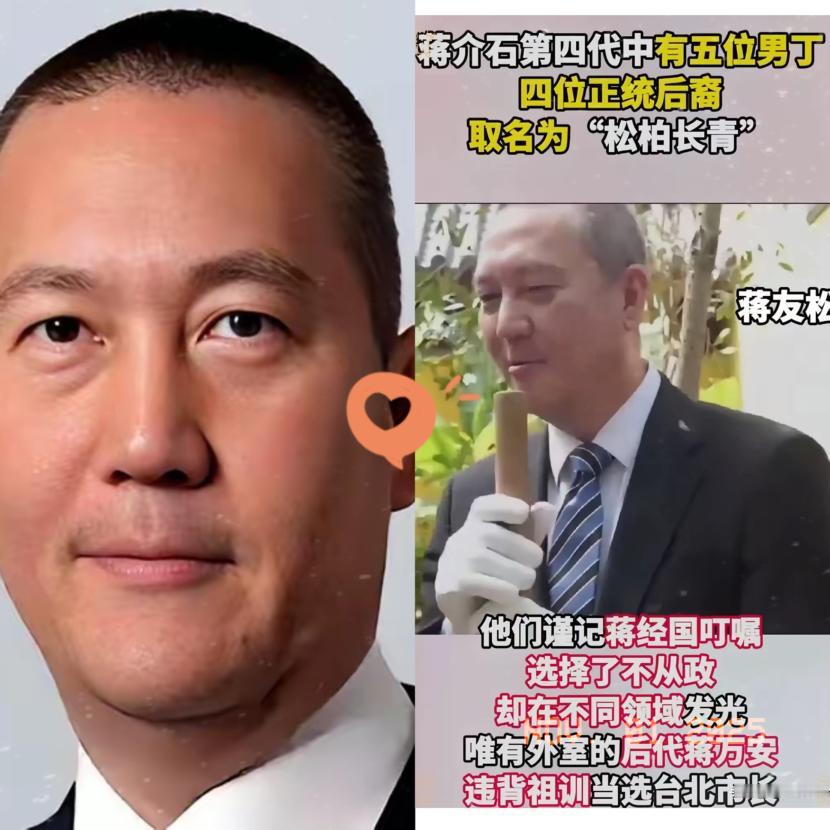 谁能想到? 蒋家真正的正牌曾孙, 压根不是在台北当市长的蒋万安! 说的就是蒋经国亲孙子蒋友松,人家早就在硅谷做成了风投大老板,之前还明说蒋家第四代不碰政治。 可最近这波操作,比谁都拎得清——带团队去澳门办台湾光复史料展,跑北京见国台办领导,还专门去南京中山陵三鞠躬,留言“传承民族精神,铭记历史荣光”,直言那些老照片、旧报纸都是铁证,台湾光复是中国人拿命换来的。 再看岛上的蒋万安,光会打太极谈和平,绝口不提统一,小心翼翼当政客,生怕说错一个字丢了选票。 其实哪有什么“正牌传承”?不是靠姓氏撑场面,也不是靠官位装样子,而是就算富甲一方、功成名就,也没忘了自己的根在哪,没忘了历史该怎么守。 你们觉得,真正的“传承”该是像蒋友松这样守根,还是像蒋万安这样求稳?来评论区聊聊~