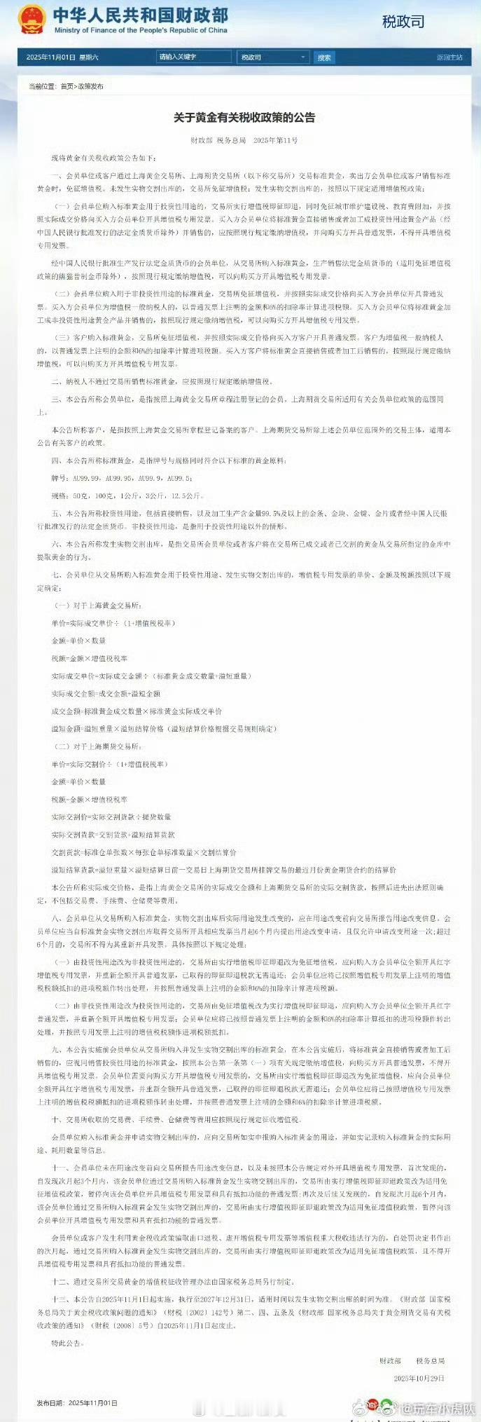 黄金有关税收政策公告来了省流:以后买卖标准黄金,通过官方渠道交易能享受税收优惠,自己私下交易则按常规处理[并不简单]