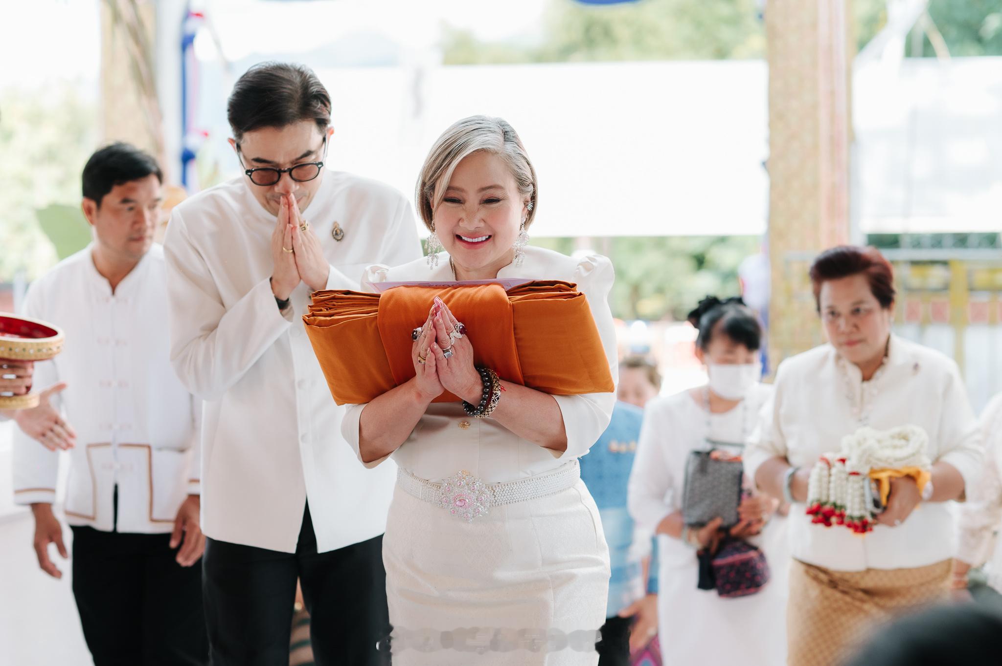 王室[超话]王室泰国王室莎莉夫妇送佛衣,看现场有颂妃的画像,应该是代表颂妃送的