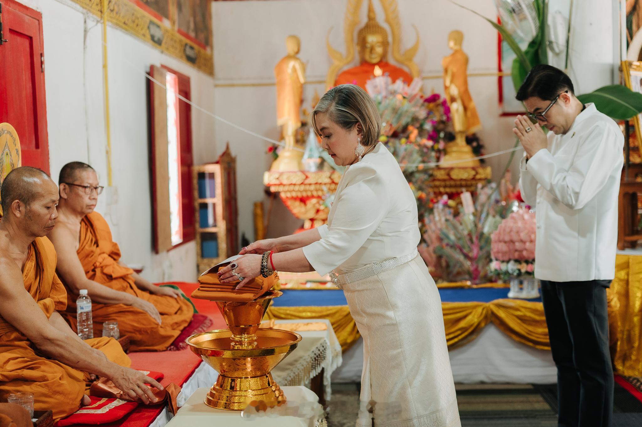 王室[超话]王室泰国王室 莎莉夫妇送佛衣,看现场有颂妃的画像,应该是代表颂妃送的。
