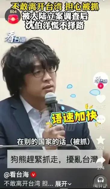 打脸来的太快 被刑事立案的台独分子 沈伯洋已经慌不择路了 前几天还嘴硬说不怕立案,不会对他产生影响,这么快就怕成这样 有网友评论说: 1,抓住才是硬道理,说一千,道一万,人还在台湾,人家根本不怕 2,全球几十万亿贸易额的全产业链国家,产生总值按照美元计算是美国的1.5倍,这样的体量根本跑不掉 3,本来应该从从容容游刃有余,现在搞得匆匆忙忙 晒图笔记大赛