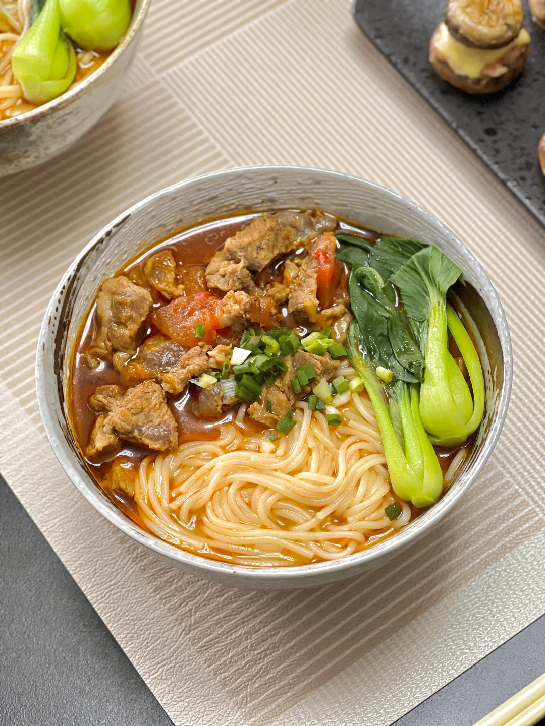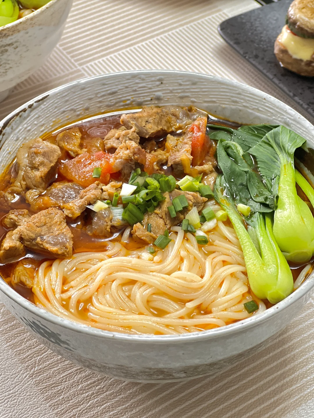 天冷的时候没什么比吃一碗热气腾腾的汤面更舒服的啦[太阳R]炖了超级多牛肉一次吃到爽,汤是浓浓的西红柿味,一口面一口汤吃得好舒服[派对R] 【西红柿牛肉面】 【脆爽萝卜】 【虾滑口蘑小汉堡】