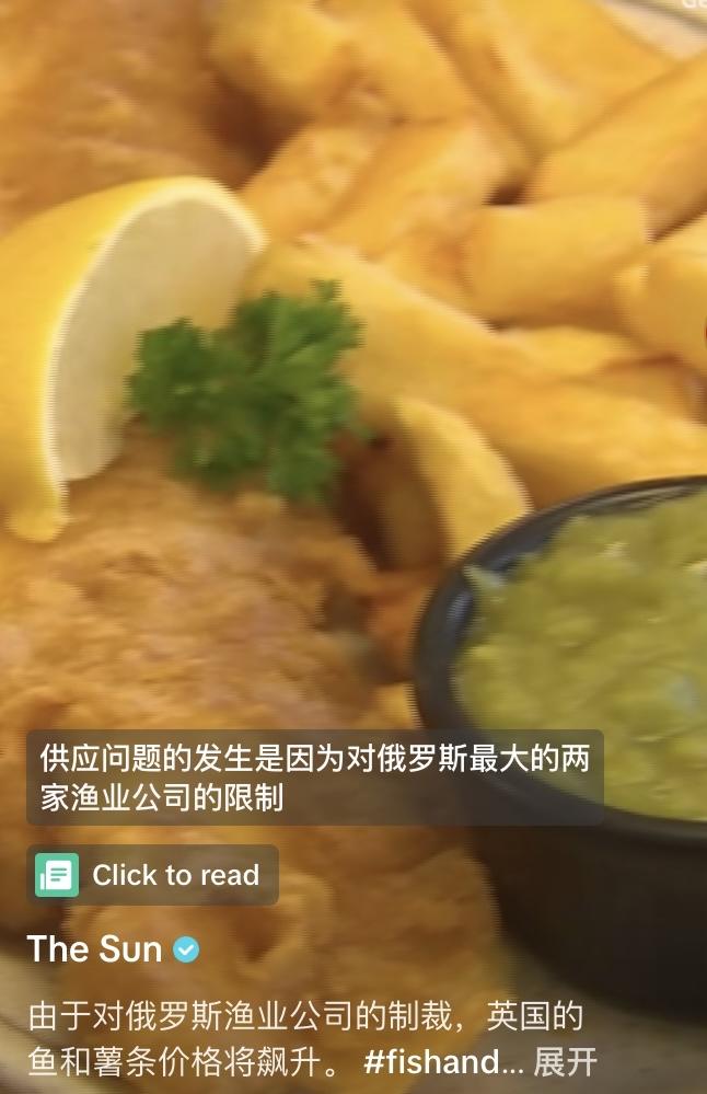 英国人快要吃不起炸鱼薯条了、由于英国指控俄罗斯两家渔业公司存在间谍活动,并对他们进行制裁限制,导致鳕鱼的批发价格翻了一倍,对全国的炸鱼餐厅造成了很大的影响,一份炸鱼薯条从6.48英镑涨到了9.88英镑,甚至还会继续飙升