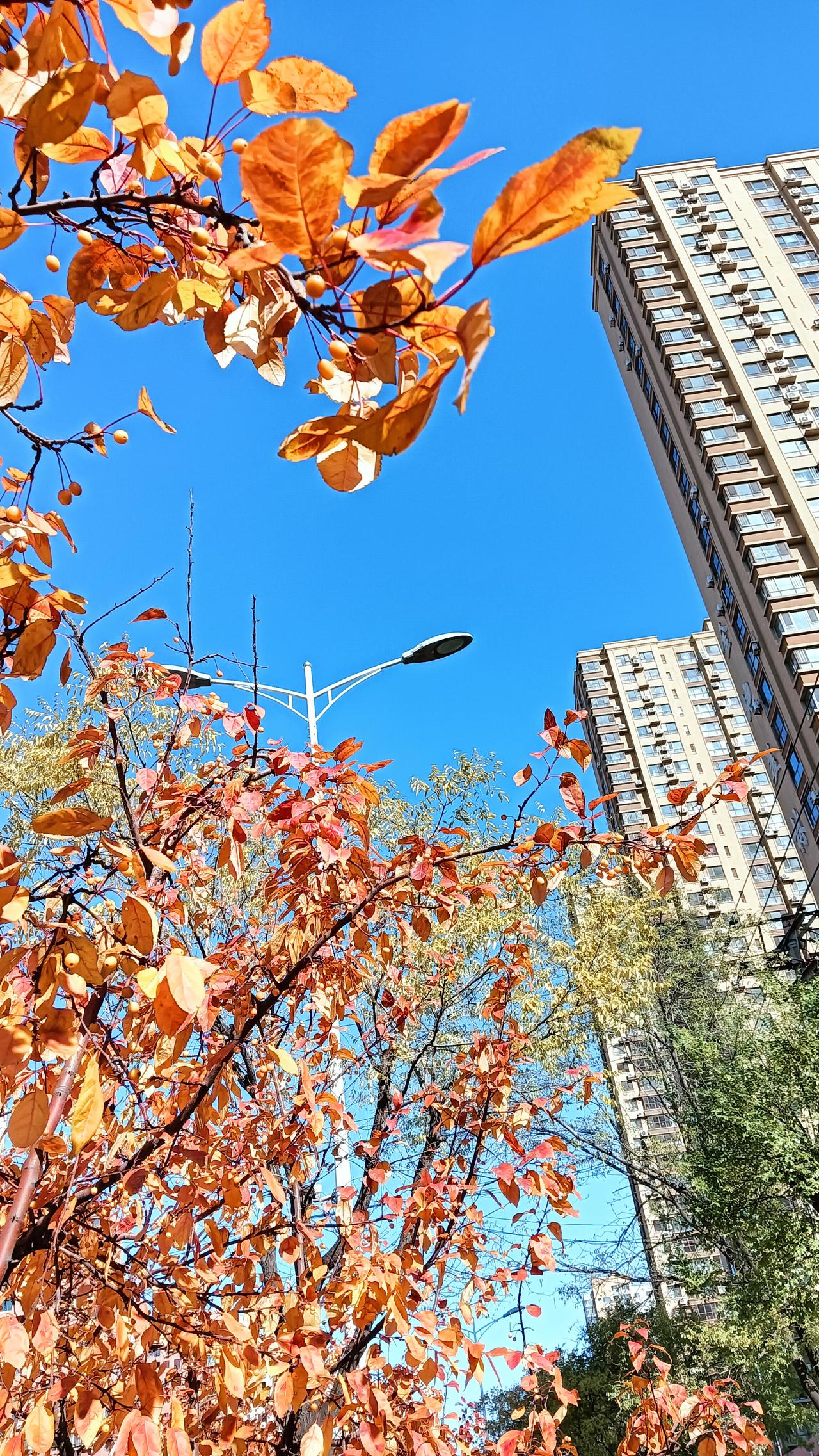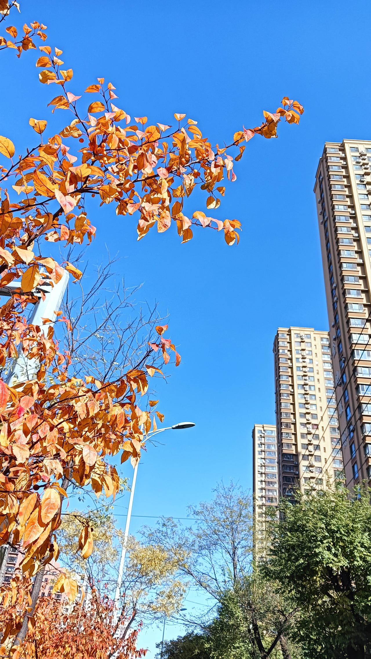 秋日,把城市染成了一幅流动的油画。 橙黄的叶在枝头燃烧,红褐与浅粉点缀其间,像一场盛大的告别仪式。 蓝天澄澈,映衬着米色高楼的冷静,路灯静静伫立,仿佛在倾听风的低语。 没有喧嚣的人群,只有季节在都市里轻声诉说。 原来,秋天从不在山野里独享,它就在你我抬头可见的街角。 每一片叶的燃烧,都是对生命最热烈的告白,无论身处钢筋水泥的丛林,还是旷野山川。 它告诉我们:真正的绚烂,不是逃离,而是在自己的位置上,活尽一季的荣光,然后坦然赴约。