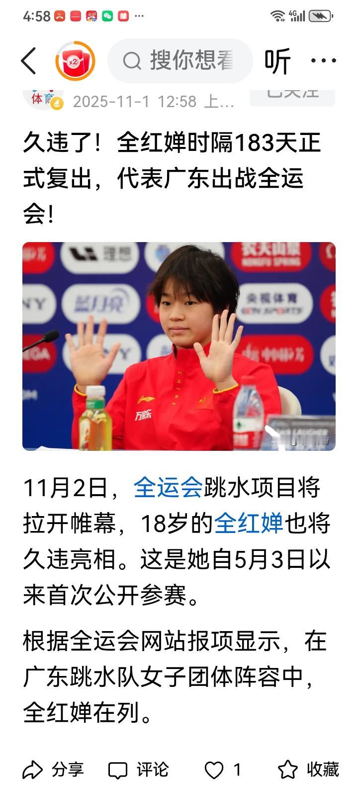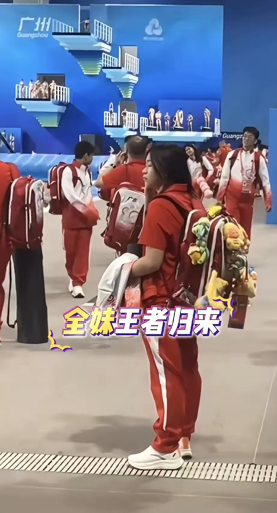 11月2日十五届全运会跳水项目开赛,全红婵时隔183天正式复出参加比赛,咪咕体育祝愿全红婵能主场得三金[赞][赞] 全红婵和队友已到比赛场地。 她背包上挂满了玩偶,看着不利索状态有些疲惫,和以前的全红婵判若两人,是另一个全红婵,长大了的全红婵,或许站上十米台又是那个空中姿态美,水花消失术的天才。加油加油。