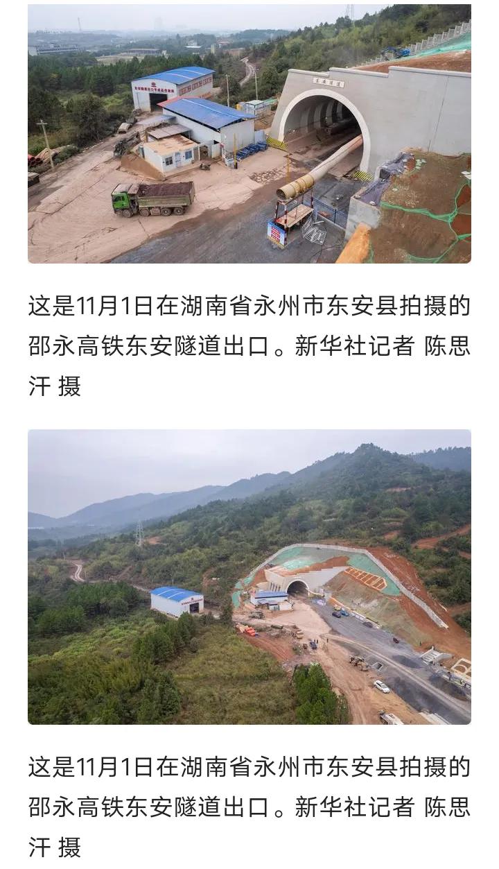 好消息,正在建设的邵阳至永州时速350公里邵永高铁绝对控制性工程全长约5.5公里的东安隧道已经挖掘过半(图四),其中路段加快架梁中,预计2027年可以如期开通运营,未来或将为重庆酉阳和秀山还有怀化和吉首等地坐高铁来往广州和深圳等地的重要通道,从长远来看时速200的怀邵衡铁路与邵永高铁应该还是需要建一条联络线的,如果所有车次都在邵阳站换向就太耽误时间了,那和走京广高铁绕行衡阳运行时间相比就没有太多优势,另外娄邵高铁和永清广高铁需要加快推进了,要不然邵永高铁就只能往广西南宁和柳州来往动车。
