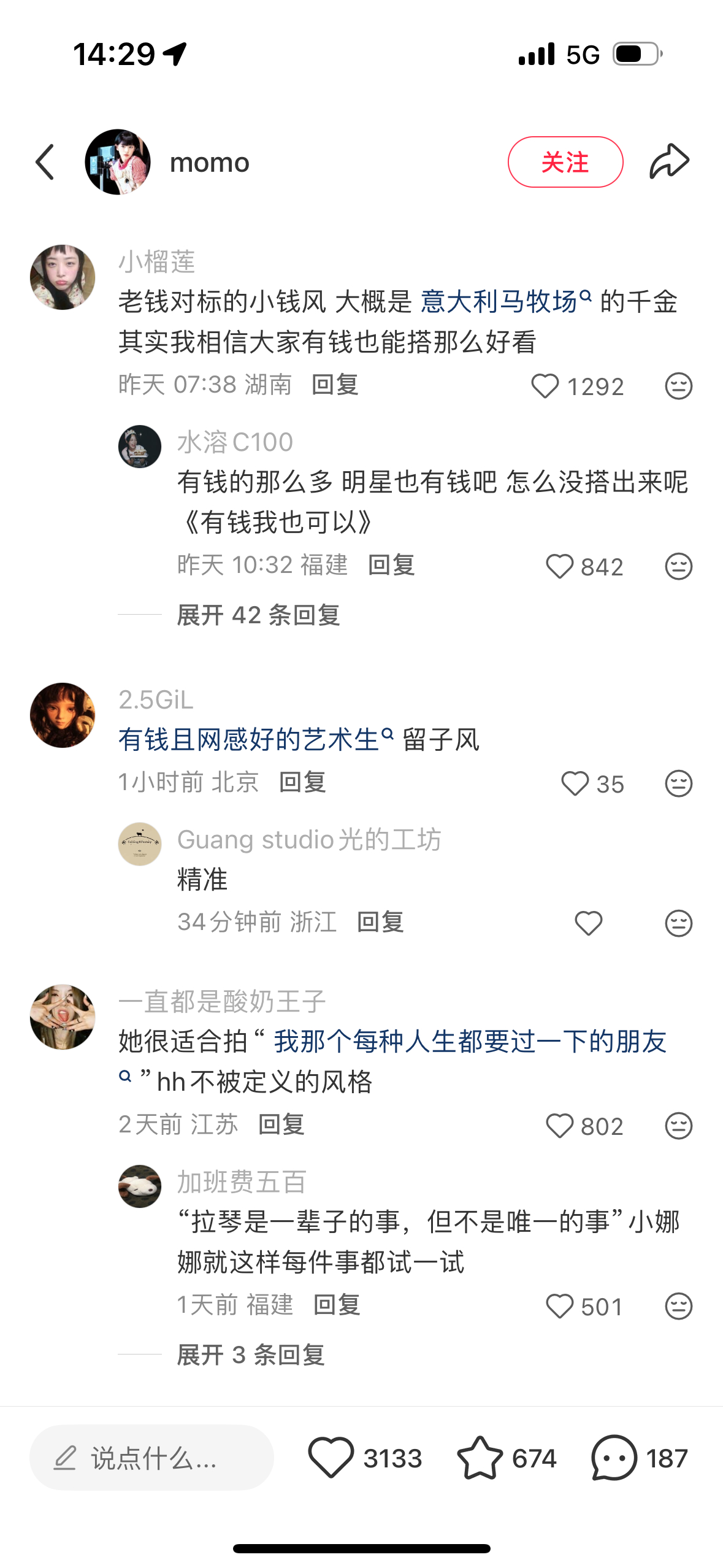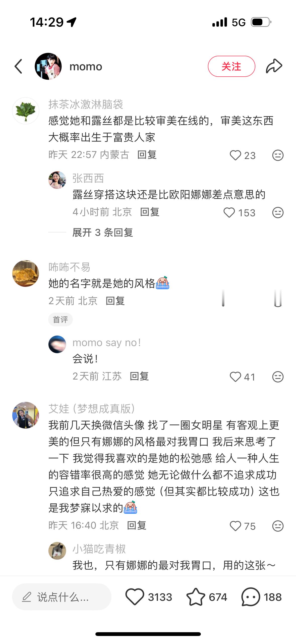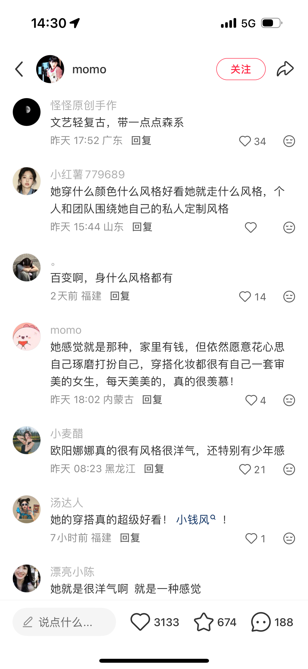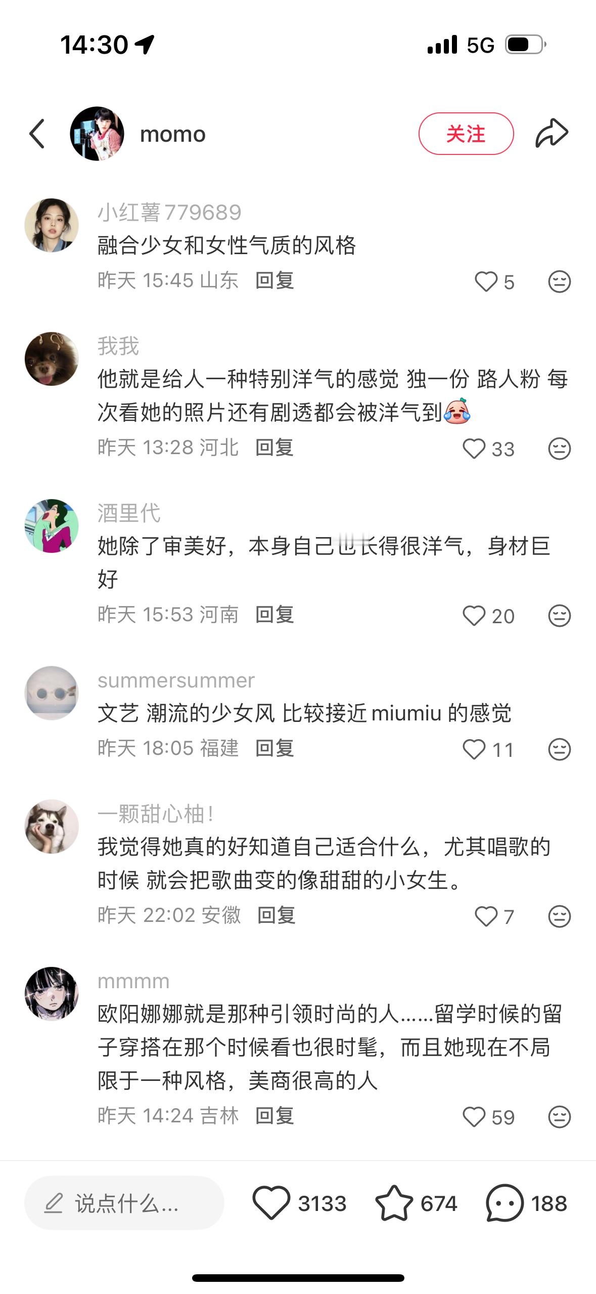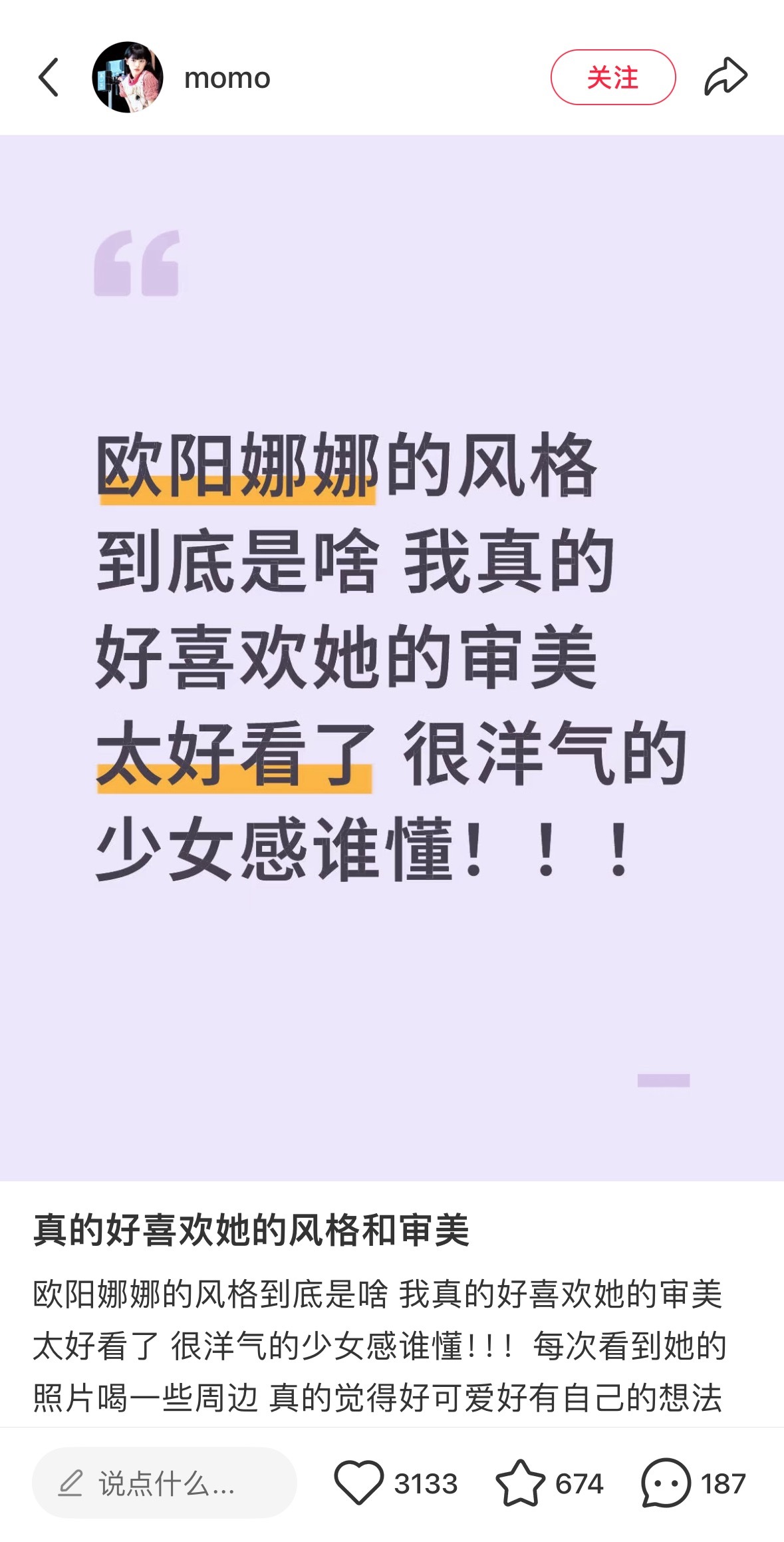 这个讨论欧阳娜娜风格的帖子下面评论都好会说