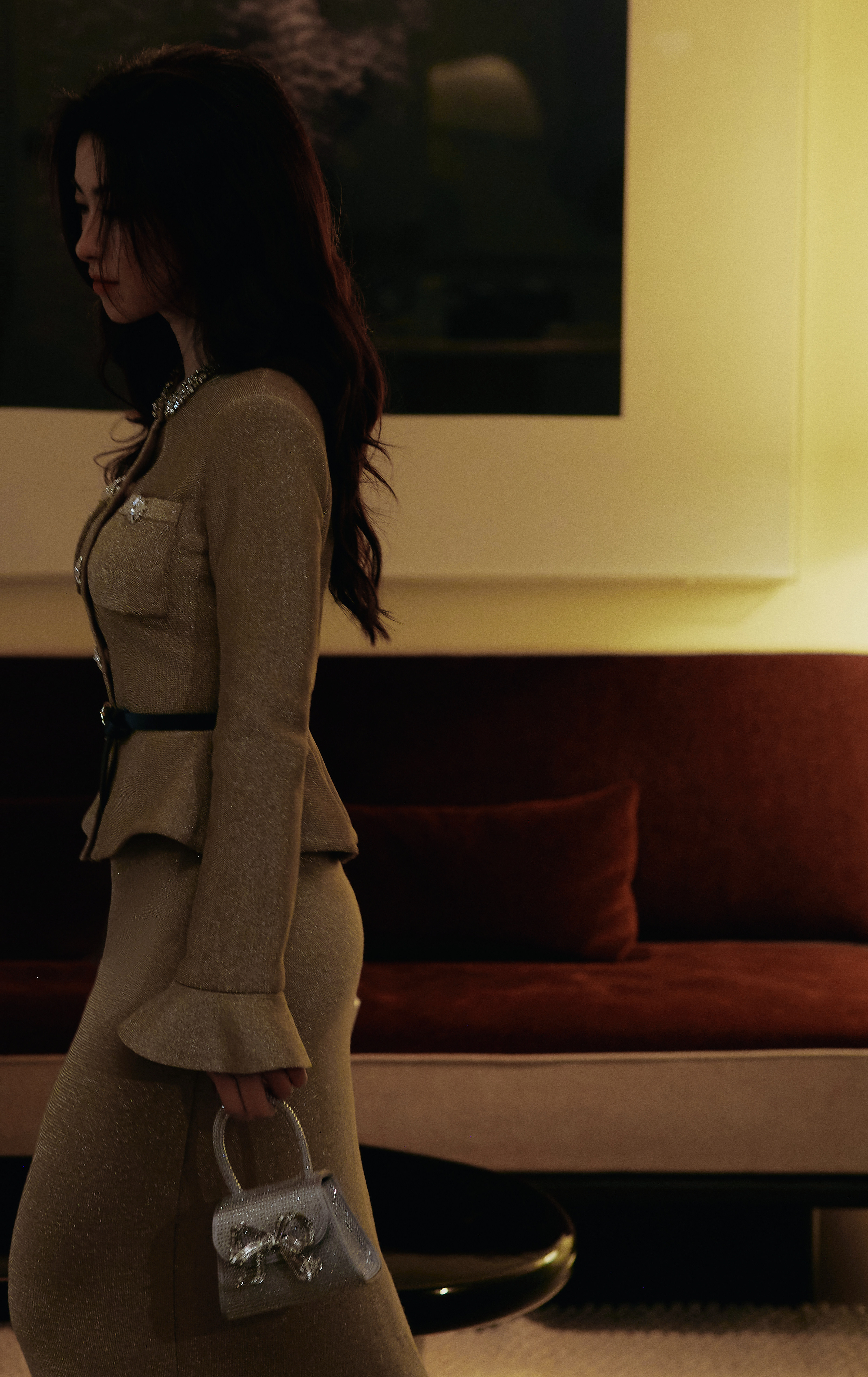 朱珠重庆self-portrait直播的造型绝了!一身闪钻鎏金套装,把复古奢华感拉满,每一帧都在疯狂输出优雅魅力,时尚表现力这块朱珠就没让人失望过!