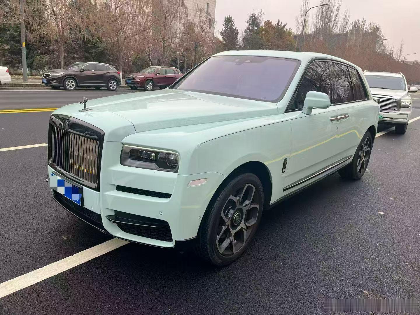 劳斯莱斯库里南BB版四座,定制薄荷绿查尔斯蓝拼白内,22年5千多公里