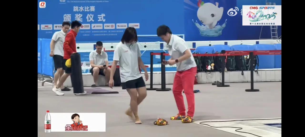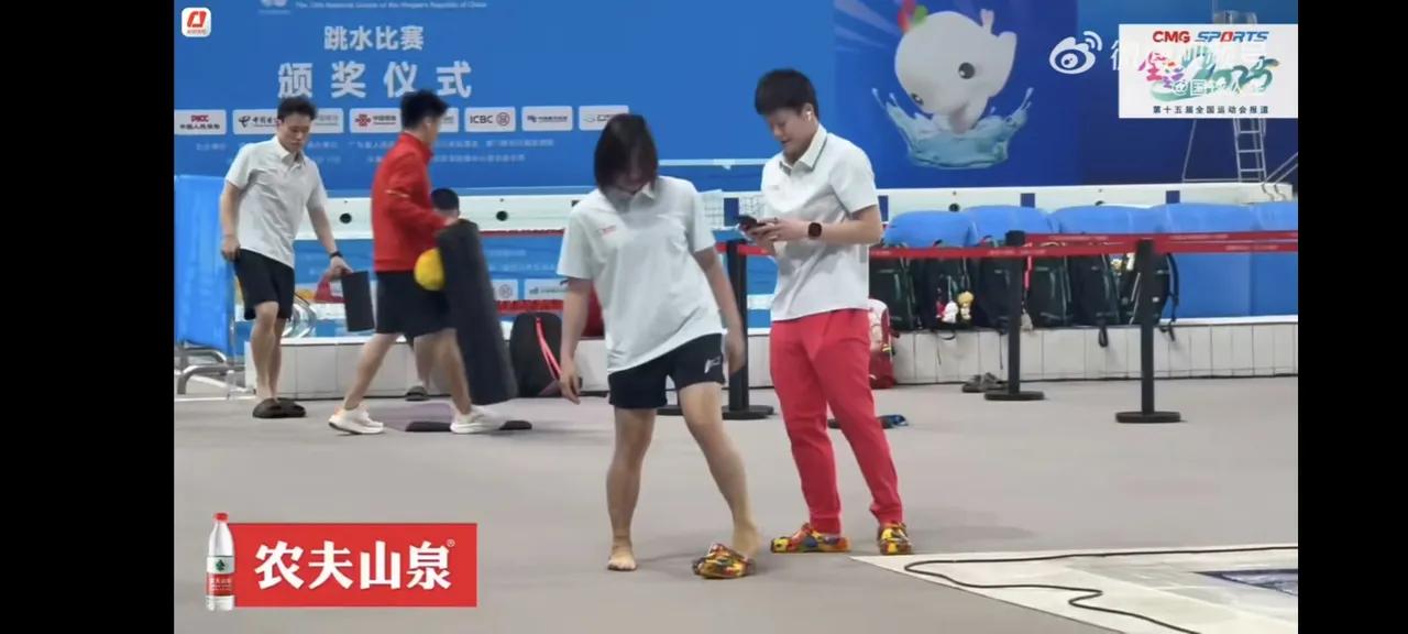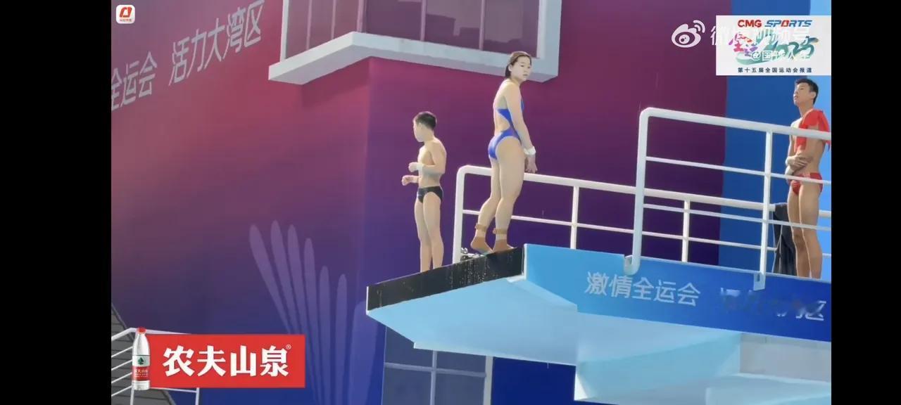 全运会跳水项目11月2日比赛,11月1日全红婵和队友在比赛场地,进行适应性训练 现在和去年可没法比,已经是质的蜕变,发育的太快了,处在发育的旺期再跳高难度动作,很难做到太伤身体了,腰上脚上都贴满肌贴,希望她健康完赛,粉丝们放过她让她开心快乐做自己吧?别再要求她跳高分了,得不了冠军别再造谣污蔑她的教练和队友了。