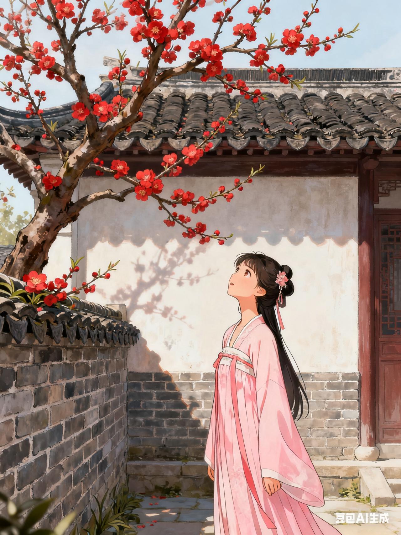 邻家小哥外地忙,院中红杏又出墙,问君花儿美不美? 唯有心头你最香,天涯纵远情不忘,朝暮盼归共举觞。 这首诗以“红杏出墙”的经典意象反转立意,表层是借“红杏”设问,实则藏着深切的思念与忠贞: - 前两句铺垫场景:爱人远在外地奔波,院中红杏虽开得娇艳(暗喻外界诱惑),却从未动摇内心; - 第三句的“问君”是亲昵的试探,更是撒娇式的告白,用“花儿美不美”引出后文的真情流露; - 续写的后三句直抒胸臆:纵然红杏娇艳,唯有心中的你最让我牵挂(“心头你最香”),无论相隔多远,情意始终未变(“天涯纵远情不忘”),最终落脚点是日夜期盼爱人归来,共饮团圆酒(“朝暮盼归共举觞”),满含相思与坚守,满是夫妻间的深情厚谊。独坐山前对闲花 独坐山前对闲花 月下怀人诗 情感古诗鉴赏 红杏出墙世无双 红杏上树 红杏院园