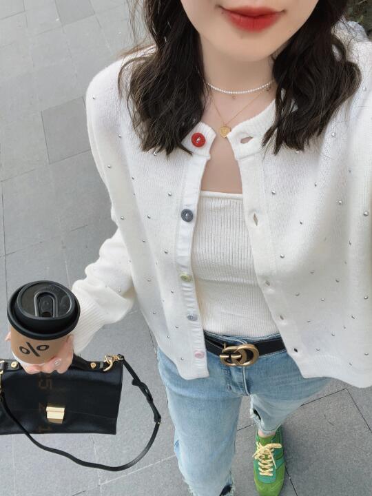 花纽扣开衫太喜欢啦!春天最爱的就是毛衣单穿!软软糯糯太舒服啦🧶🌸 清爽舒适的感觉哪个打工人不爱!