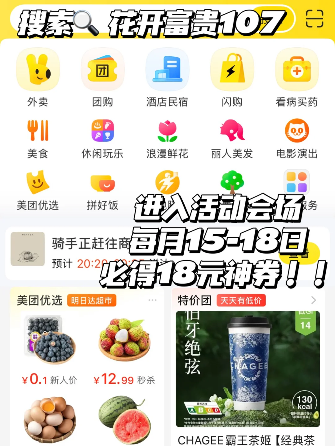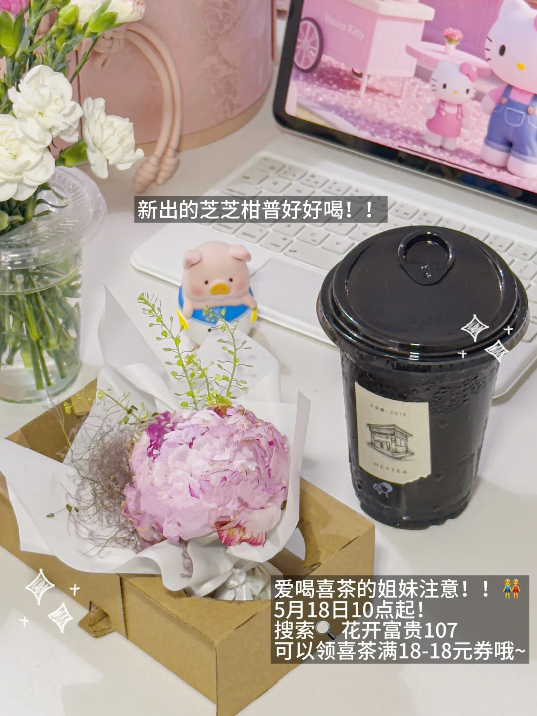 又多了一个点奶茶的理由!! 在美团点奶茶还意外领到鲜花!! 打工人瞬间被治愈了~ 插在奶茶杯里好好看555🥹 目前在10个城市20个【外卖柜】取外卖可以领到鲜花哦 一整个惊艳住~真的好浪漫啊啊!! 而且这次买的奶茶用完券也超便宜!! 记得下单前先搜【花开富贵107 】!! 每月15-18日都可以领~必得18元神券!! 5月18日10点起,还可以领喜茶满18-18元券哦~ 赶紧定好闹钟给我的闺蜜们安排上龙井芝士糯糯!!