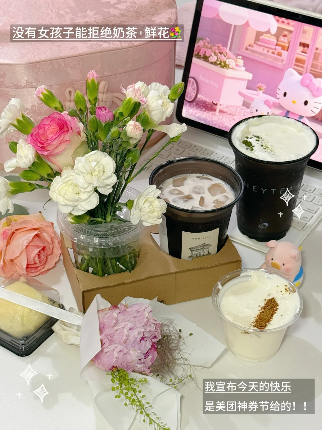 是谁还不知道。。美团点奶茶意外领到鲜花了!!