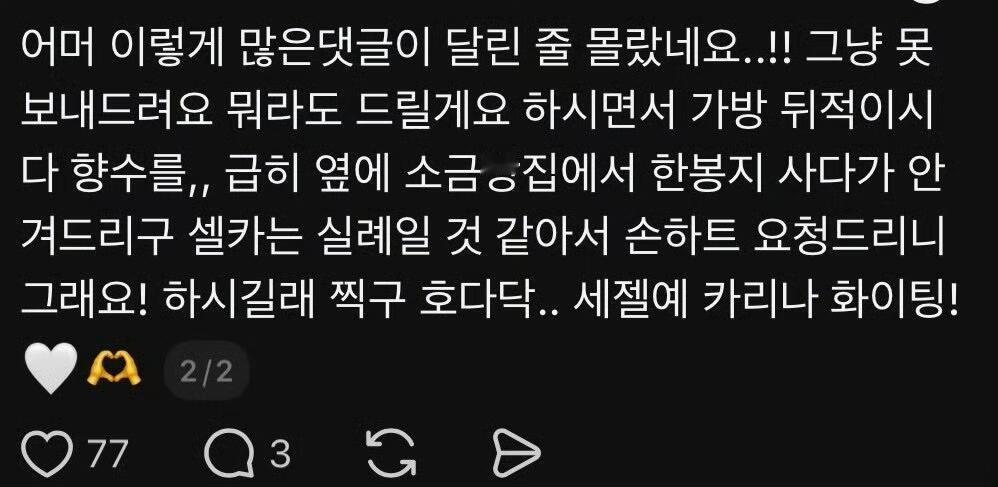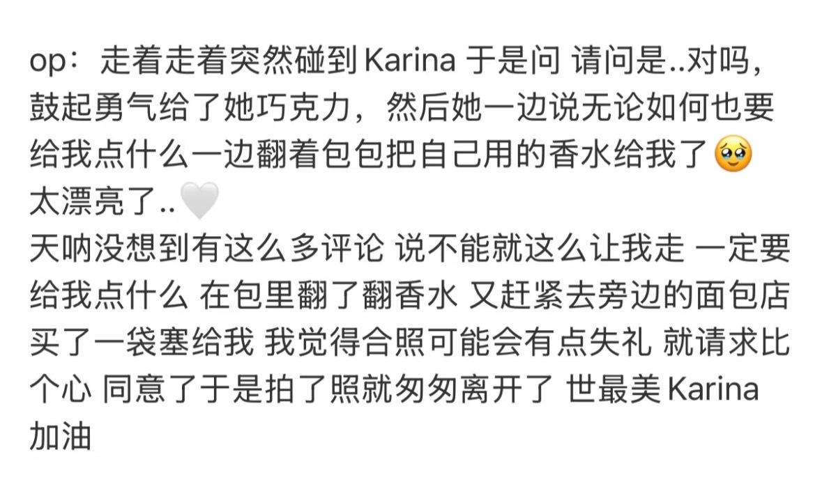 有人在路上偶遇柳智敏,被赠送香水和一袋面包🥺