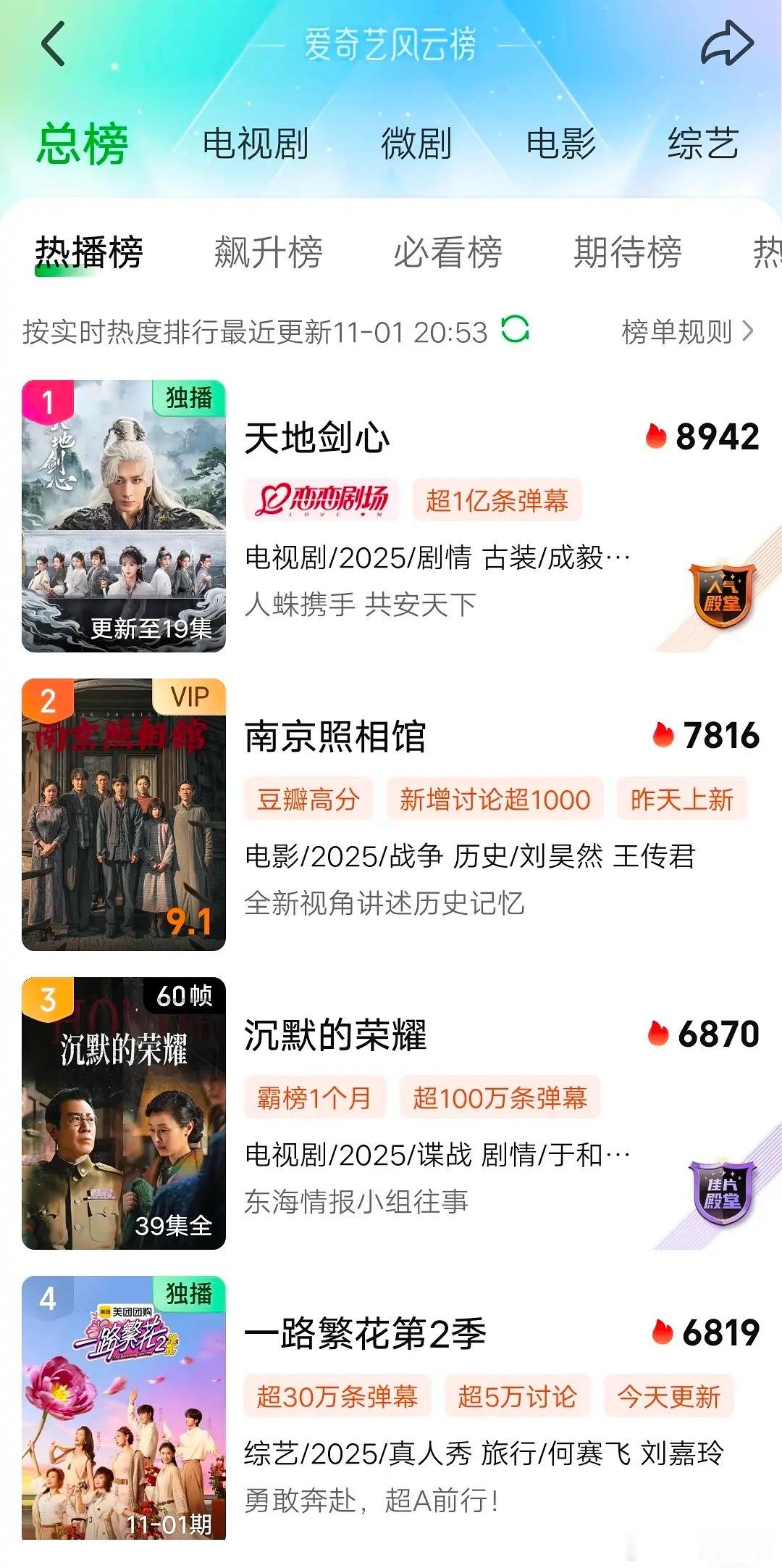 成毅《天地剑心》开始发酵,随着剧中热梗弹破圈加上有效线下剧宣,云合登顶,平台弹幕破1亿!!!