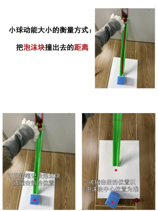 2️⃣坡度很大时泡沫块被打得没那么远,是不是意味着小球的动能小?
