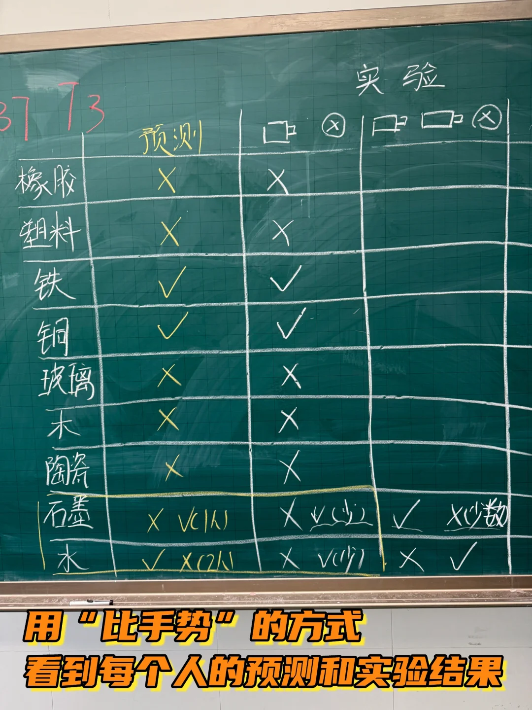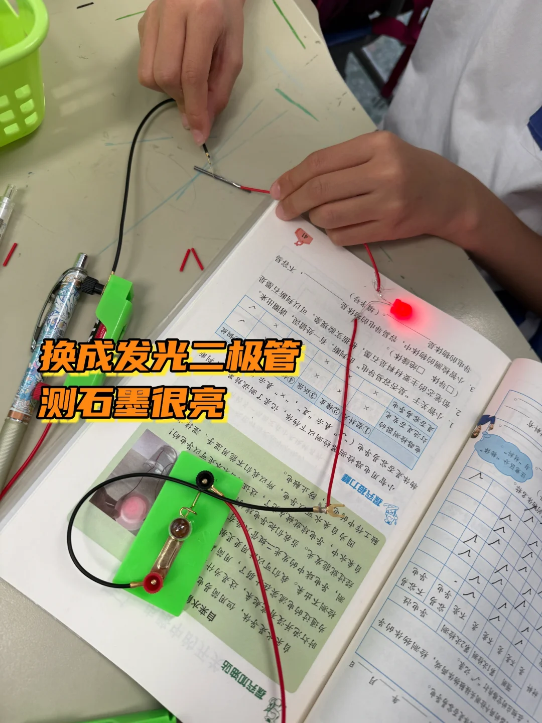 [集美R]:老师要【表扬你】,因为刚刚大家对物体的评价都是能或者不能导电,但是你换了种表达方式,你从它的【导电能力】的角度评价它为【不是特别能导电】。